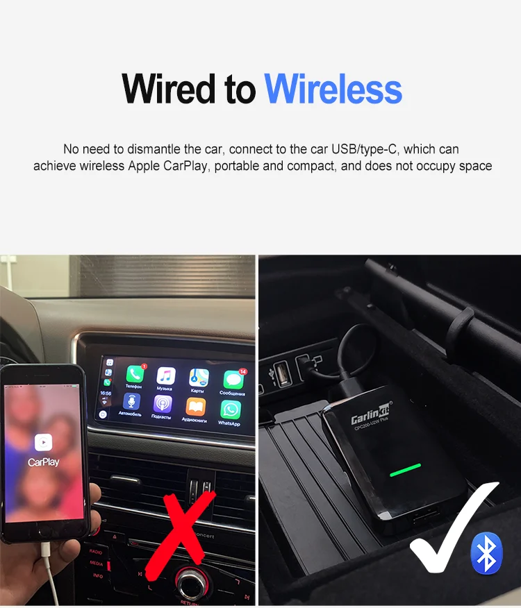 Endlich kabellos im Auto! Dieser CarPlay Adapter verwandelt deinen kabelgebundenen Skoda Scala (2019-2024) in ein wireless System. Einfach per USB anschließen und schon verbindet sich dein iPhone automatisch - kein lästiges Kabel einstecken mehr. Das Smartphone kann in der Tasche bleiben während du Navigation, Musik und Anrufe kabellos nutzt. Unterstützt die originale Fahrzeugsteuerung über Touchscreen und Lenkradtasten. Perfekte Stabilität ohne Ruckeln oder Verbindungsabbrüche. Mit dabei: Ein Type-C Adapter für verschiedene USB-Anschlüsse. Einfach Plug & Play - keine Software-Installation nötig. Nach der Erstkonfiguration verbindet sich alles automatisch beim Start. Ideal für Pendler die täglich CarPlay nutzen. Schont den Smartphone-Anschluss vor Abnutzung. Kompakt und unauffällig - nimmt kaum Platz weg. Macht jede Fahrt komfortabler und moderner. Auch für Android Auto geeignet. Ein kleines Gerät das einen riesigen Unterschied im Fahralltag macht. Nie wieder Kabelsalat im Auto - einfach einsteigen und losfahren!