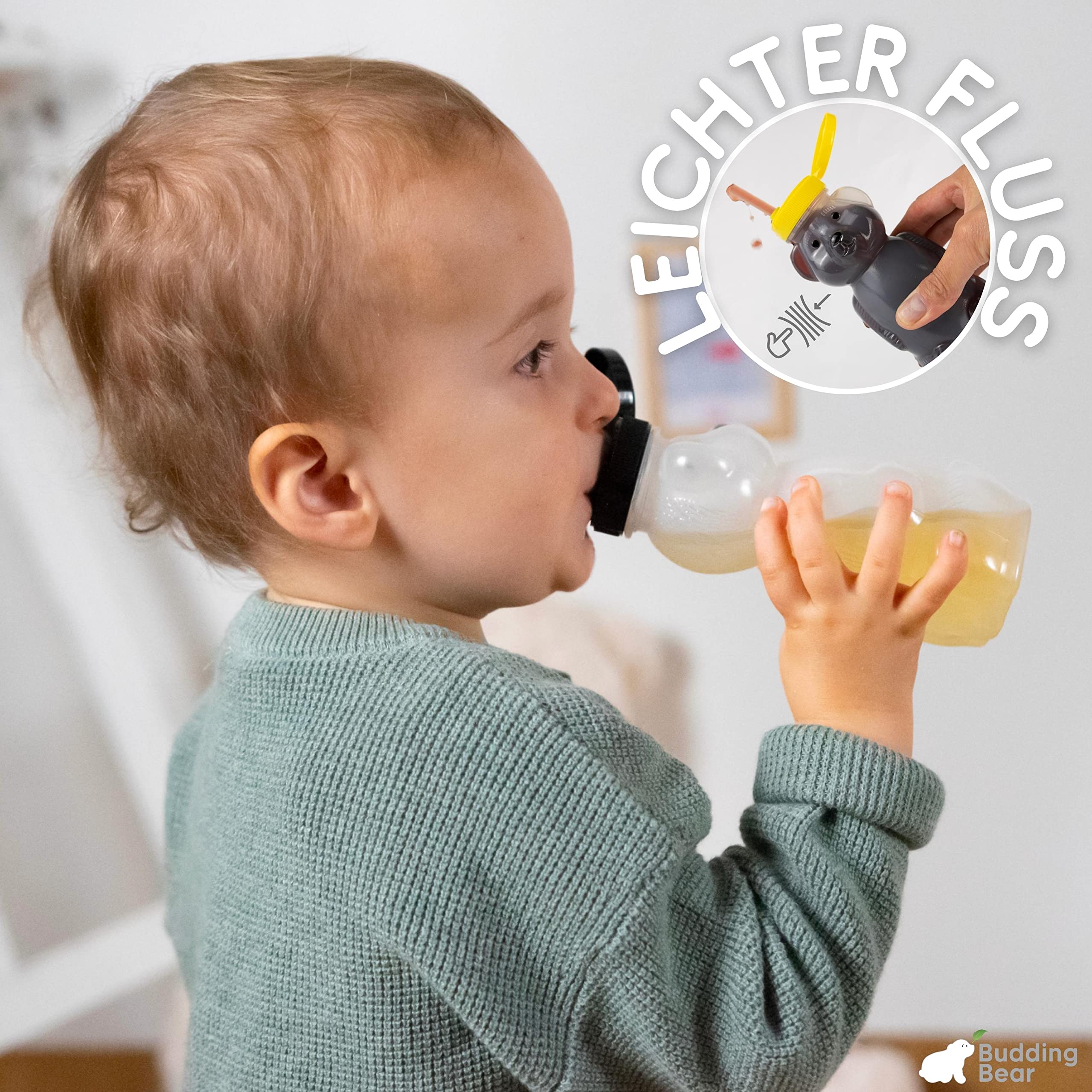3 Bären-Strohhalmflaschen Set - Mit Reinigungsbürsten Für Kinder