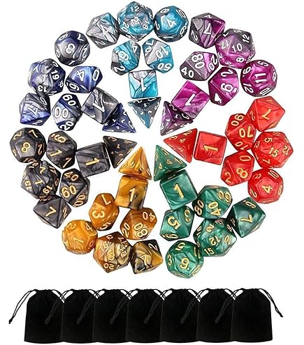 Das ultimative Würfel-Set für deine Rollenspiel-Abenteuer! Enthält 10 komplette Sets mit je 7 Würfeln: D20, D12, D10, D8, D6 und D4 - insgesamt 70 Teile! Das besondere Perlen-Design in zweifarbiger Optik sieht nicht nur cool aus, sondern die großen, klaren Zahlen sind super gut ablesbar. Hergestellt aus leichtem, bruchfestem Acryl - perfekt für unterwegs. Ideal für Dungeons & Dragons, Magic: The Gathering, Yugioh, Brettspiele oder den Unterricht. Jedes Set hat sein eigenes Farbschema. Mit praktischem Aufbewahrungsbeutel. Aber Vorsicht: Ab 14 Jahren empfohlen! Ob erfahrener Spielleiter oder Einsteiger - mit diesen Würfeln meisterst du jedes Abenteuer stylisch!