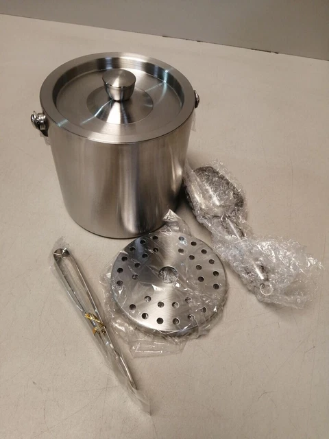 Foydream Eiswürfelbehälter 1,6L Edelstahl - Doppelwandig Isoliert, Mit Sieb & Schaufel, Bier & Sektkühler
