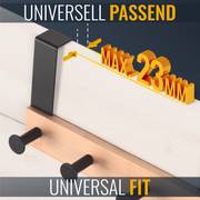 Hey, mehr Stauraum ohne Bohrlöcher in der Wand! Diese coole Türgarderobe aus natürlichem Bambus und robustem Stahl hängst du einfach über deine Tür - und schon hast du 4 stabile Haken für Jacken, Taschen, Handtücher oder was auch immer. Super praktisch für den Flur, Badezimmer oder Schlafzimmer. Die vergrößerten Hakenenden sorgen dafür, dass nix runterrutscht, und die schicke Kombi aus Schwarz und Braun passt in jede Einrichtung. Passt an Türen bis 23mm Stärke und ist innerhalb von Sekunden montiert - echt unkompliziert! Umweltfreundlich ist sie obendrein, weil aus nachwachsendem Bambus. Sag endlich dem Tür-Chaos Lebewohl!