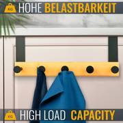 RICOO Türgarderobe Aus Bambus - 4 Haken Ohne Bohren, Perfekt Für Jacken & Taschen
