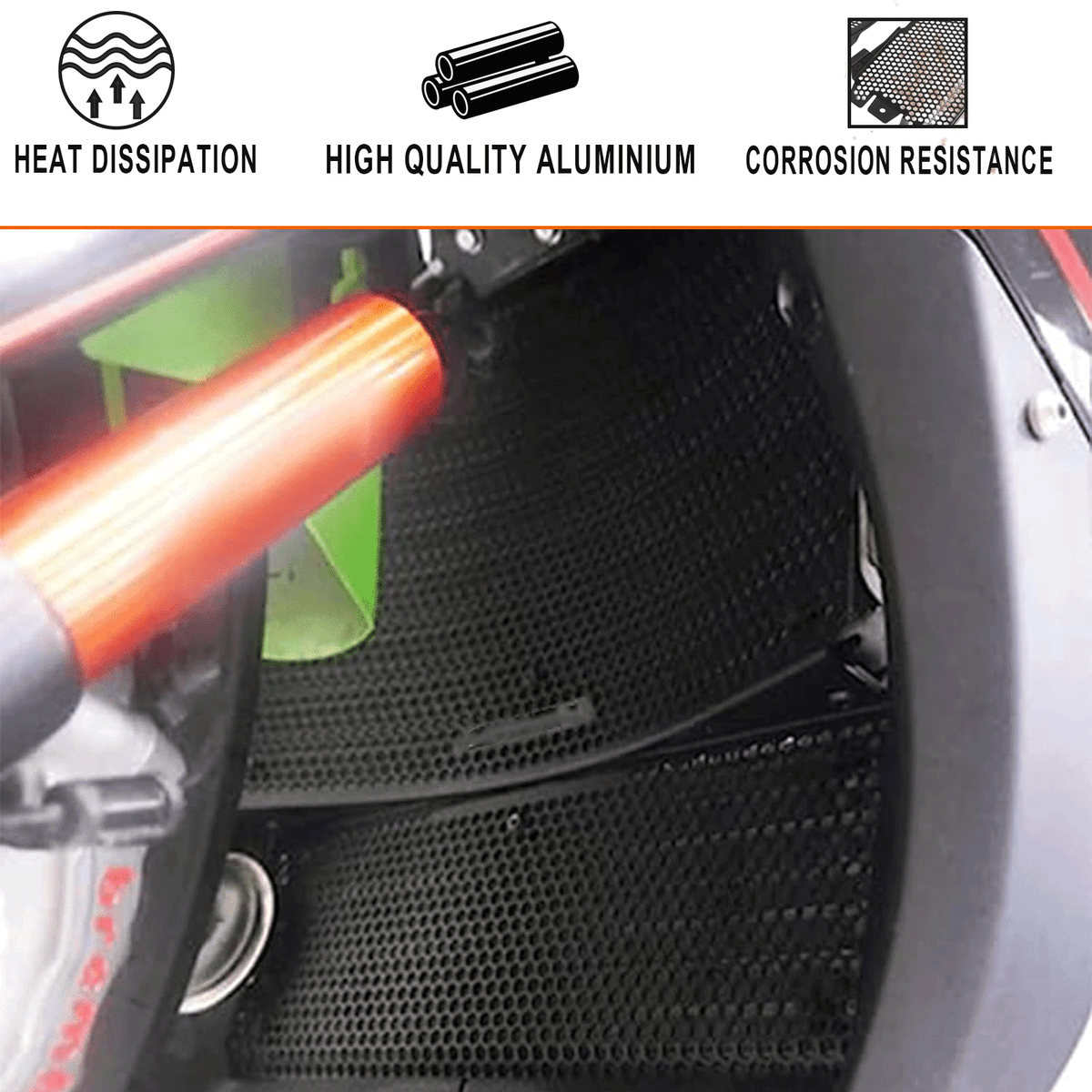 Schütze deine Kawasaki ZX-6R mit diesem robusten Kühlergrill Cover! Speziell entwickelt für die Modelle 2024-2026. Aus hochwertigem, rostbeständigem Aluminium mit 1,6 mm Stärke - leicht aber extrem langlebig. Das feine Sechseck-Maschenmuster in der Mitte schützt optimal vor Steinchen und Staub, während die gröberen Muster an den Seiten für beste Kühlung sorgen. In mattschwarz sieht es nicht nur sportlich aus, sondern ist auch funktional. Verhindert Verstopfungen der Kühlerlamellen und schützt vor Beschädigungen. Einfache Montage - dein Kühler bleibt sauber und leistungsfähig. Perfekter Schutz bei hohen Geschwindigkeiten. Mach deine ZX-6R winterfest oder schütze sie ganzjährig. Qualität, die sich lohnt!
