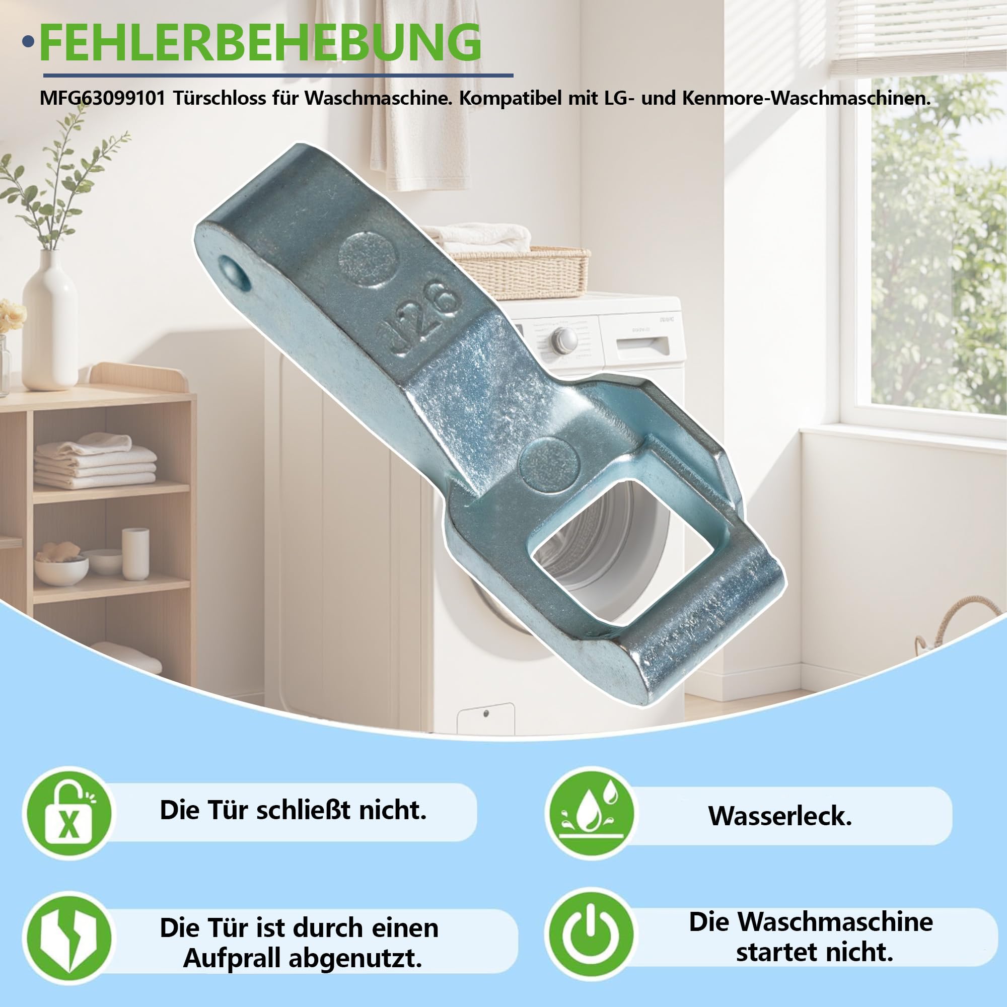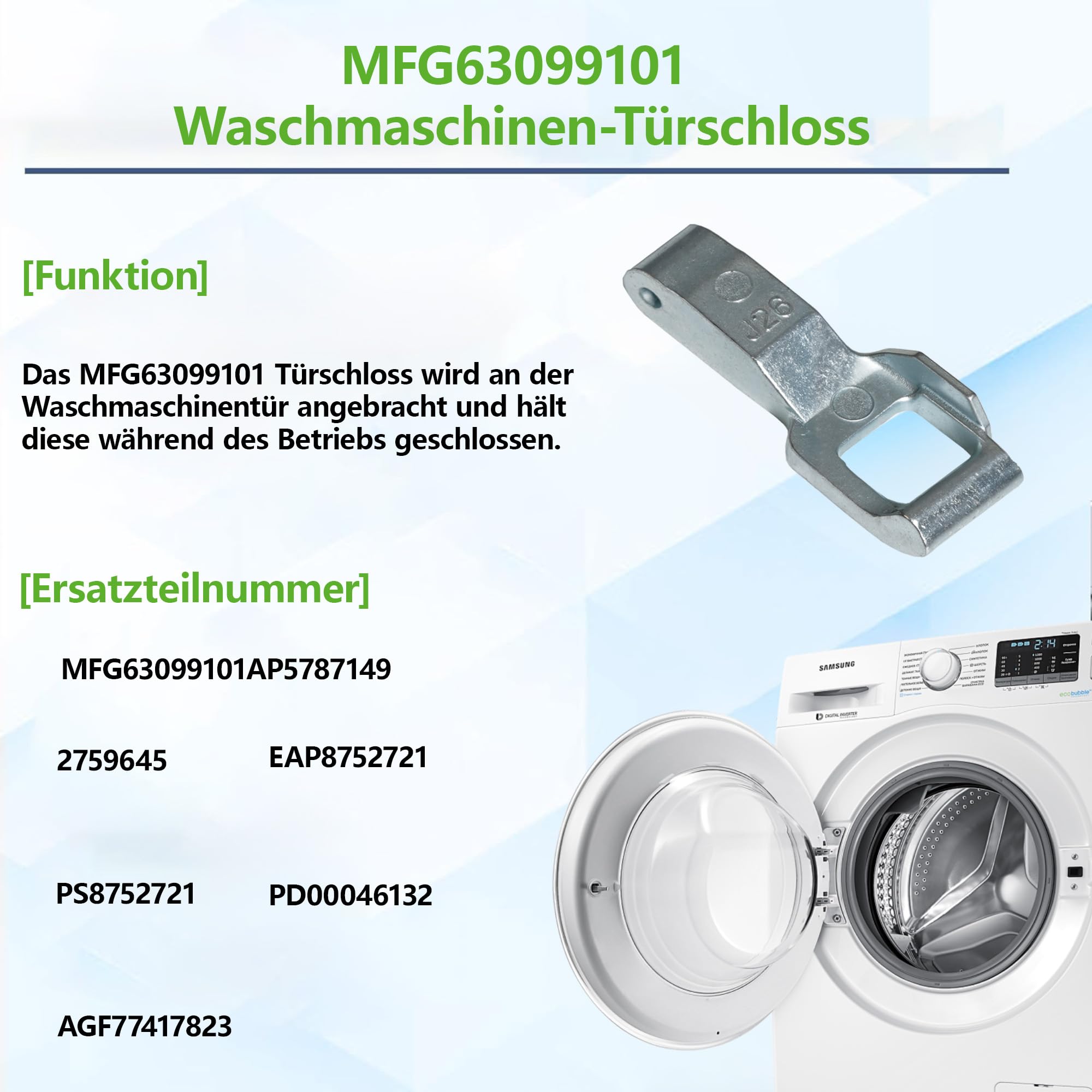 Türhaken Für LG Waschmaschinen - Edelstahl Mit Schloss Kompatibel MFG63099101