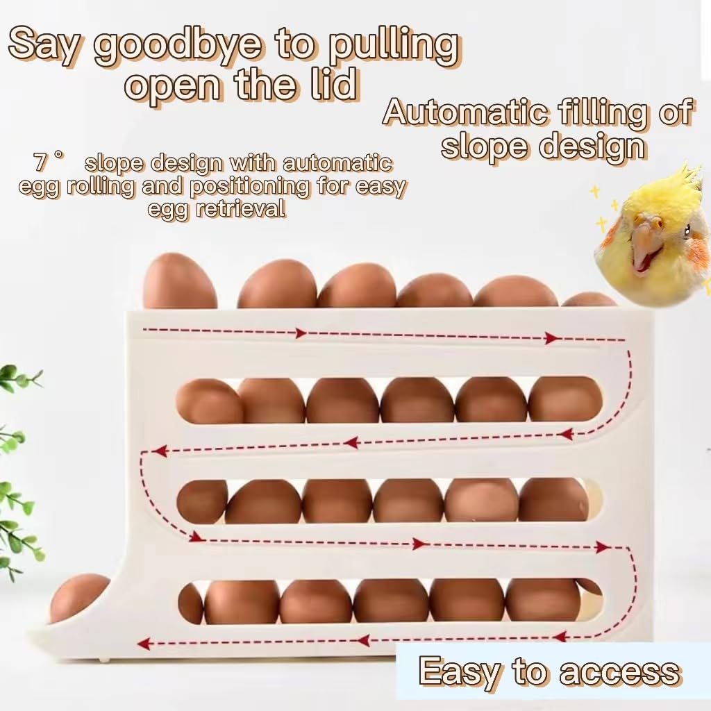 Endlich Ordnung im Kühlschrank! Dieser geniale Eierhalter mit automatischem Rollsystem macht die Eieraufbewahrung zum Kinderspiel. Das 2er-Set in reinem Weiß passt perfekt in jeden Kühlschrank und spart dabei wertvollen Platz. Mit 4 Etagen bietet er Platz für viele Eier - ideal für Familien oder Viel-Eier-Esser! Das Schwerkraft-System sorgt dafür, dass die Eier sanft nach vorne rollen, sobald du eines entnimmst. Nie wieder gekippte Eier oder langes Suchen! Die seitlichen Schutzschienen und vertieften Rillen sorgen dafür, dass die Eier sicher liegen und nicht versehentlich kaputt gehen. Aus hochwertigen Materialien gefertigt, ist dieser Eier-Organizer langlebig und leicht zu reinigen. Einfach die Eier von oben nachfüllen und von vorne entnehmen - so einfach kann Eier-Aufbewahrung sein! Perfekt für alle, die ihre Küche ordentlich und organisiert halten wollen. Damit wird dein Kühlschrank zum richtigen Hingucker!