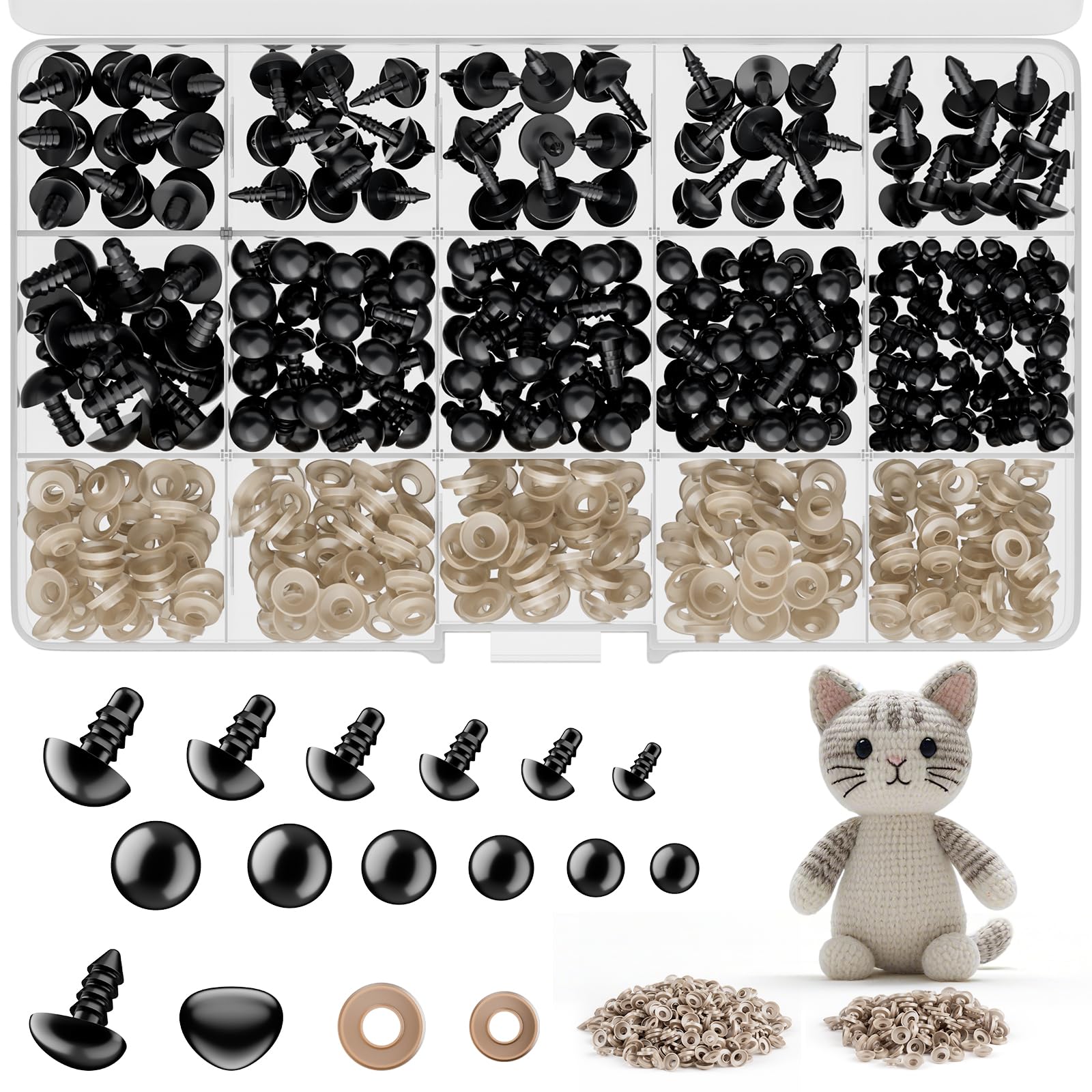 752 Stück Sicherheitsaugen Für Häkeltiere | 5-12 Mm Mit Unterlegscheiben | Amigurumi Augen & Nasen