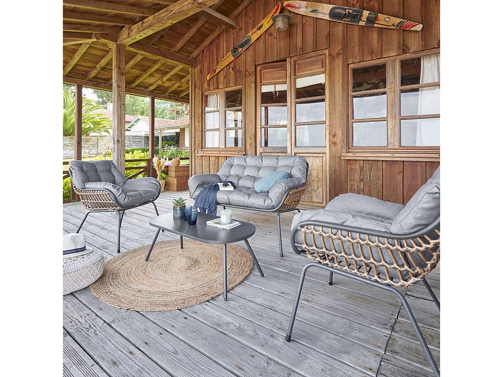 Entspannen wie im Urlaub! Die Hespéride Paopao Lounge Garnitur verwandelt deinen Garten in eine Wohlfühloase. Das 4-teilige Set in strahlendem Weiß besteht aus einem Zweisitzer-Sofa, zwei Sesseln und einem Couchtisch.\n\nDas Seilgestell im modernen Design kombiniert mit den gemütlichen Polsterkissen lädt zum Verweilen ein. Das Stahlgestell ist epoxidbehandelt für optimalen Rostschutz - perfekt für den Außenbereich.\n\nPraktisch: Die verstellbaren Füße sorgen für gute Stabilität auch auf unebenem Untergrund. Mit 31 kg Gesamtgewicht ist die Garnitur stabil, aber dennoch gut zu bewegen.\n\nFür eine lange Lebensdauer empfehlen wir, die Möbel im Winter einzulagern oder mit Schutzbezügen zu schützen. Perfekt für sonnige Tage mit Familie und Freunden - hier fühlst du dich sofort wohl!