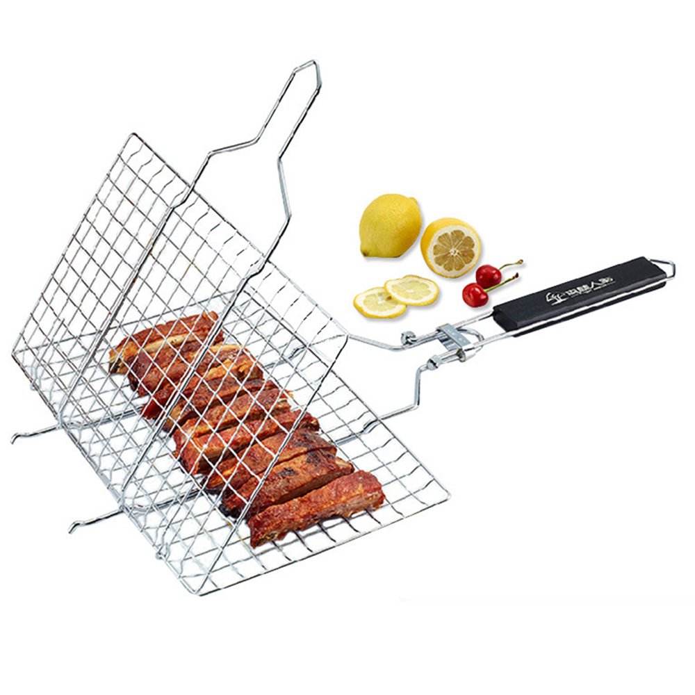 Grillen ohne dass alles in die Glut fällt? Mit diesem Edelstahl-Grillkorb wird Grillen zum reinen Vergnügen! Maße: 64,5x31x5,5cm - groß genug für mehrere Steaks, Fischfilets oder Gemüsestücke gleichzeitig. Der abnehmbare Holzgriff ist hitzebeständig und liegt gut in der Hand. Die Schiebeschnalle verriegelt den Korb sicher - nichts fällt heraus beim Wenden. Aus hochwertigem Edelstahl - rostfrei, leicht zu reinigen und extrem langlebig. Klappbares Design - platzsparend für Transport und Lagerung. Perfekt für Camping, Picknick oder den heimischen Garten. Egal ob zarte Fischfilets, saftige Steaks, Garnelen oder Gemüse - alles bleibt sicher im Korb und gart gleichmäßig. Kein lästiges Zusammenpicken von Essen aus der Glut mehr! Das Grillgut behält seine Form und sieht appetitlich aus. Einfach den Korb auf den Grill legen, nach einigen Minuten wenden - und schon hast du perfekt gegrilltes Essen ohne Verlust. So macht Grillen richtig Spaß - probier's aus und überzeug dich selbst!