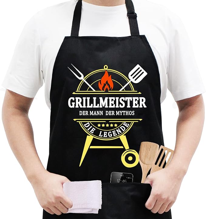 Der absolute Hit für jeden Grillmeister! Diese coole Schürze mit dem Spruch \\\Keine Sorge, ich schaffe das!\\\ bringt garantiert Lacher auf deine nächste Grillparty. Aus robustem Polyester das Fettspritzer abweist. Zwei riesige Taschen (29x19cm) für Zange, Gewürze & Co. Verstellbarer Nackengurt (30-60cm) und 80cm lange Bindebänder passen an jede Statur. Größe: 70x80cm - schützt von Brust bis Knie. Perfekt als Geschenk zu Vatertag, Geburtstag oder einfach so. Macht auch beim Heimwerken oder Gartenarbeit eine gute Figur. Maschinenwaschbar - praktisch und pflegeleicht!