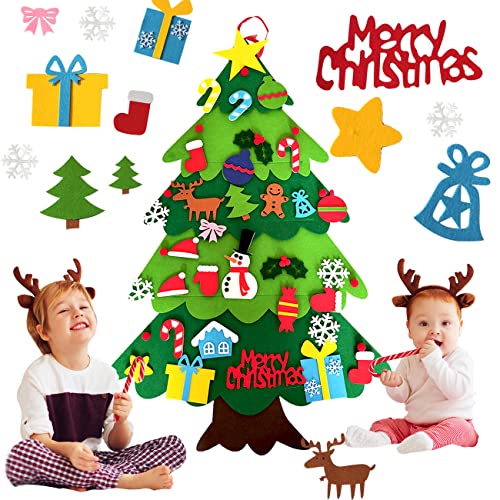DazSpirit Filz Weihnachtsbaum Mit Lichtern Für Kinder - 1,45m DIY Baum Mit 39 Ornamenten - Wandbaum Für Kinderzimmer