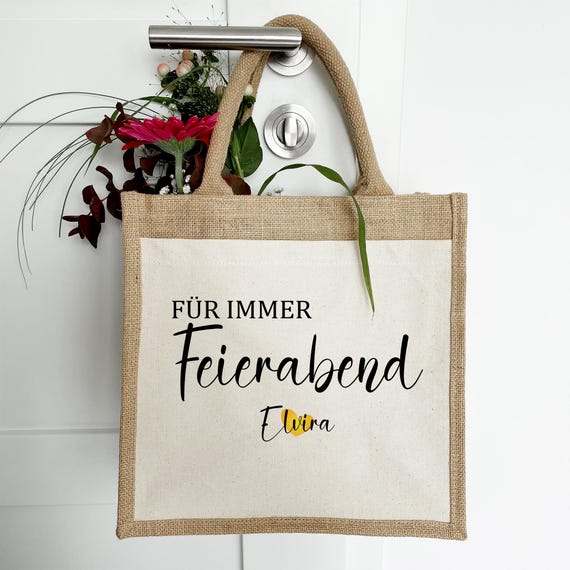 Endlich Feierabend - und zwar für immer! Diese super praktische Tasche mit dem lustigen Aufdruck \FÜR IMMER Feierabend\ ist das perfekte Geschenk zur Rente. Ob für die Kollegin, die Freundin oder die Ehefrau - diese Tasche kommt immer gut an. Mit 33x27x16 cm ist sie groß genug für Einkäufe, Bücher oder alles, was man so braucht. Die 50 cm langen Henkel liegen super in der Hand und die Tasche lässt sich ganz easy zusammenfalten und verstauen. Hergestellt aus hochwertigem Canvas und Baumwolle fühlt sich das Material nicht nur gut an, sondern hält auch was aus. Die robusten Nähte garantieren, dass die Tasche lange hält. Der coole Vintage-Look mit dem zeitlosen Spruch sorgt für Schmunzler und passt zu jedem Outfit. Perfekt für den Einkauf, den Strand oder einfach als täglicher Begleiter. Ein Geschenk, das wirklich von Herzen kommt und die Vorfreude auf den Ruhestand noch größer macht. Viel besser als die üblichen Blumen oder Pralinen - hier hat jemand richtig mitgedacht!