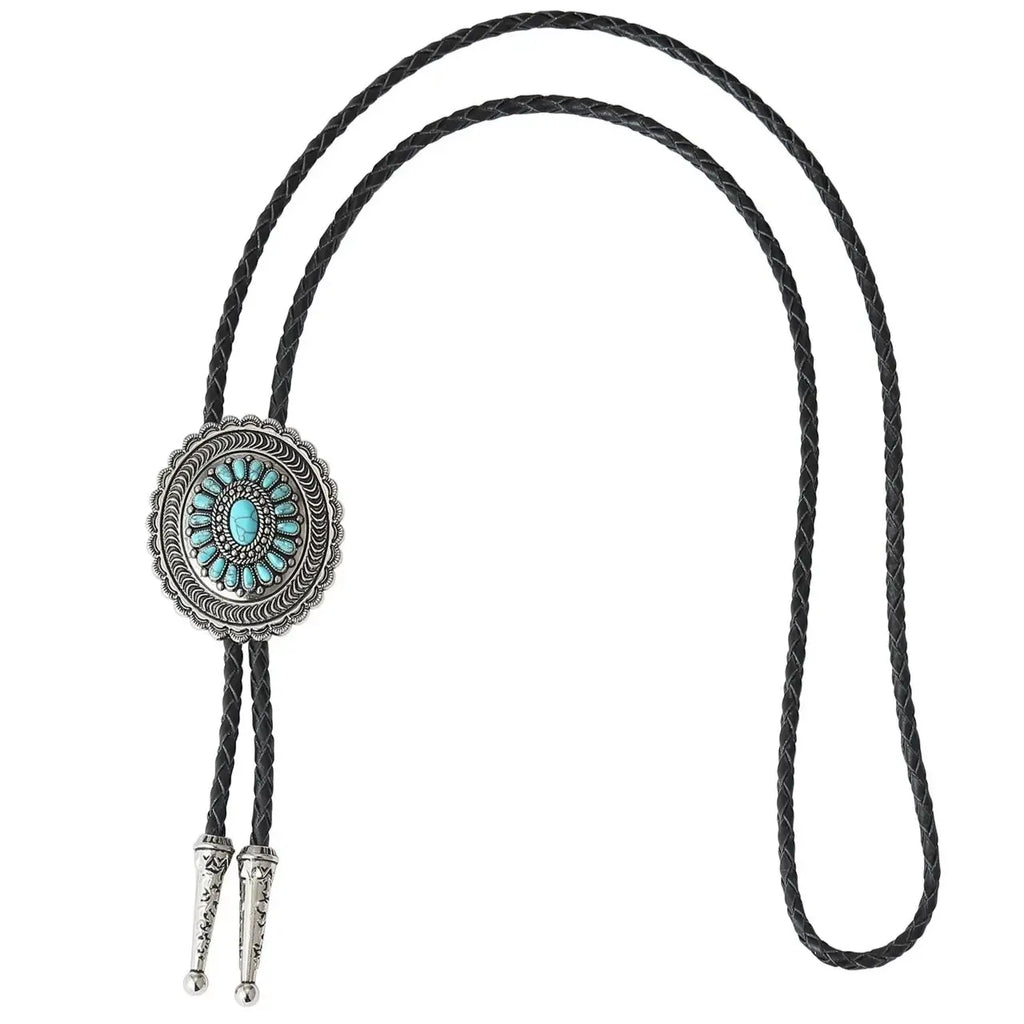 Bring Western-Flair in deinen Style! Diese authentische Bolo-Krawatte in Türkis mit metallischer Schnalle im Vintage-Design ist perfekt für Cowboy-Fans. Mit ca. 108cm Länge und verstellbarer Schnalle passt sie sich jedem Halsumfang an. Die Metalllegierung ist rostfrei und behält auch bei langer Lagerung ihren Glanz. Super kombinierbar mit Jeans, Hemden, Cowboyhut oder Western-Kostüm - ob für besondere Anlässe oder als tägliches Accessoire. Einfach anzulegen, angenehm zu tragen und ein echter Hingucker! Verleihe deinem Outfit den letzten Schliff mit diesem stylischen Western-Accessoire.