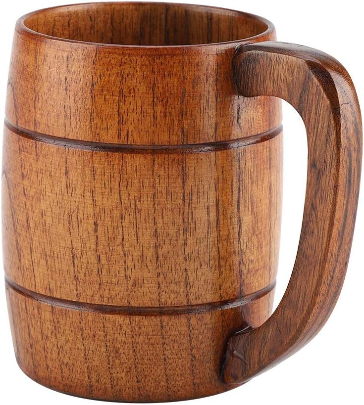 Suchst du was Besonderes für dein nächstes Bier? Dieser Holzbierbecher bringt rustikales Flair in dein Leben! Aus natürlichem Holz gefertigt, fühlt er sich super in der Hand an. Mit 300ml Fassungsvermögen ist er perfekt für Bier, aber auch für Tee, Kaffee oder andere Getränke. Die Maße sind etwa 10,8cm hoch und 8cm Durchmesser - also schön handlich. Besonders cool für Camping, Gartenpartys oder die eigene Hausbar. Das Holz ist schön dick und robust, hält also was aus. Und es sieht einfach klasse aus - dieses natürliche Design kommt immer gut an. Leicht zu reinigen und umweltfreundlich obendrauf. Perfekt als Geschenk für Bierliebhaber oder einfach für dich selbst. Ob in der Bar, im Restaurant oder daheim - mit diesem Becher wird jedes Getränk zum Erlebnis. Probier's aus - Holz macht einfach mehr Spaß!