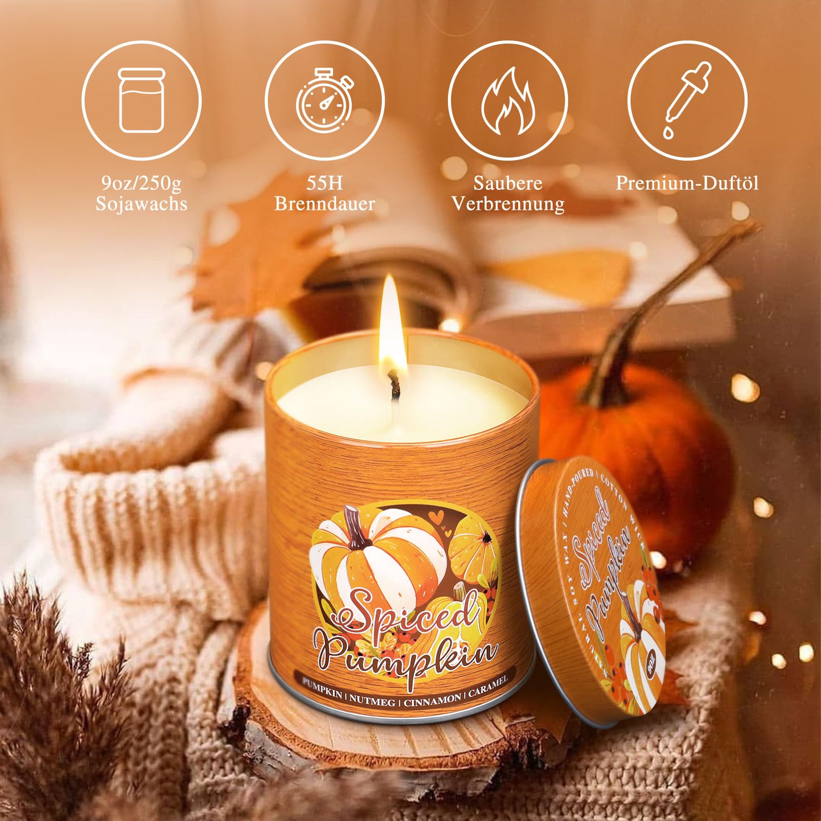 Herbst Duftkerze Cinnamon Pumpkin Spice - Natürliches Sojawachs Mit Kürbis-Duft Für Gemütliche Abende