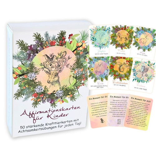 Stärke dein Kind von innen heraus! Dieses wundervolle Set mit 44 handgemalten Affirmationskarten wurde von Pädagogen entwickelt. Aufgeteilt in 4 Kategorien: Mut, Selbstbewusstsein, Achtsamkeit und Lebensfreude. Jede Karte hat eine zauberhafte Illustration und kindgerechte Erklärung auf der Rückseite. Mit praktischen Übungskarten für schöne Eltern-Kind-Momente. Perfekt für Morgenrituale, vor dem Einschlafen oder einfach zwischendurch. In stabiler Aufbewahrungsbox - ein ideales Geschenk zur Einschulung oder für den Kindergarten!