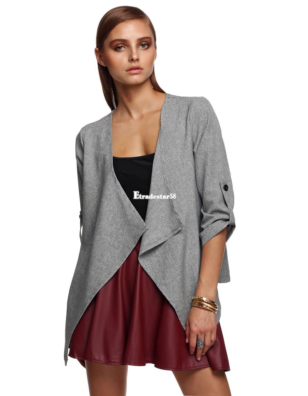Damen Strickjacke 3/4 Ärmel - Leichter Open Front Cardigan Sommer