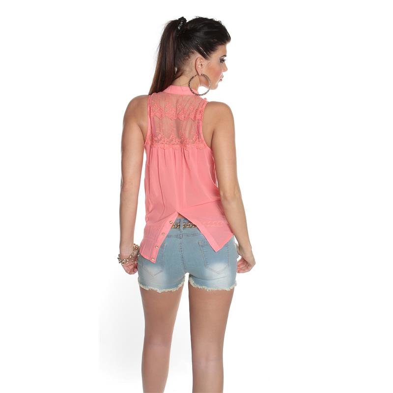 So schön luftig-leicht! Diese ärmellosen Spitzen-Tops sind perfekt für den Sommer. Mit dem dekorativen V-Ausschnitt, der sich vorne binden lässt, kannst du die Weite individuell anpassen. \\n\\nAus luftigem Mesh-Chiffon gefertigt, fühlt sich das Top angenehm auf der Haut an. Der slim Fit sorgt für eine schmeichelhafte Silhouette - einfach elegant und zeitlos schön! \\n\\nPerfekt für Urlaub, Festival oder sommerliche Abende. Kombinierbar mit Jeans, Röcken oder Shorts - ein echter Allrounder für deinen Kleiderschrank. \\n\\nIn verschiedenen Farben erhältlich, passt zu jedem Stil. Ob lässig oder elegant - dieses Top macht immer eine gute Figur! \\n\\nHol dir diesen sommerlichen Begleiter und genieße die warme Jahreszeit in Style!