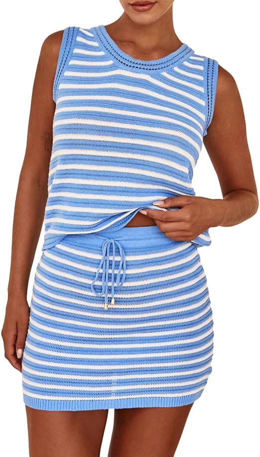 Damen 2-tlg Set - Ärmellose Weste & Geraffter Rock | Bohemian Style Für Sommer