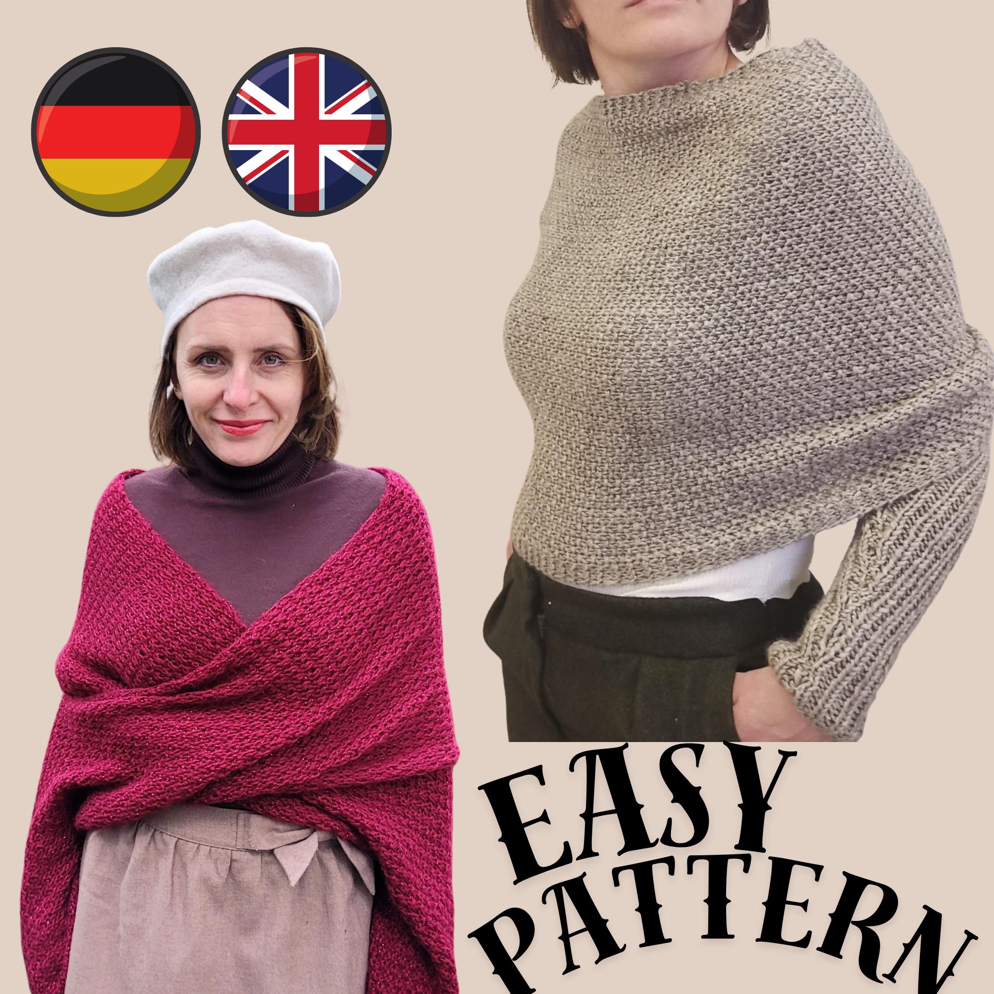 Schal Mit Ärmeln Für Damen - Gestrickter Umhang Mit Zopfmuster, Inklusive Brosche & Geschenktüte