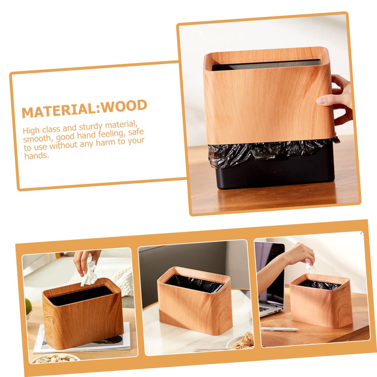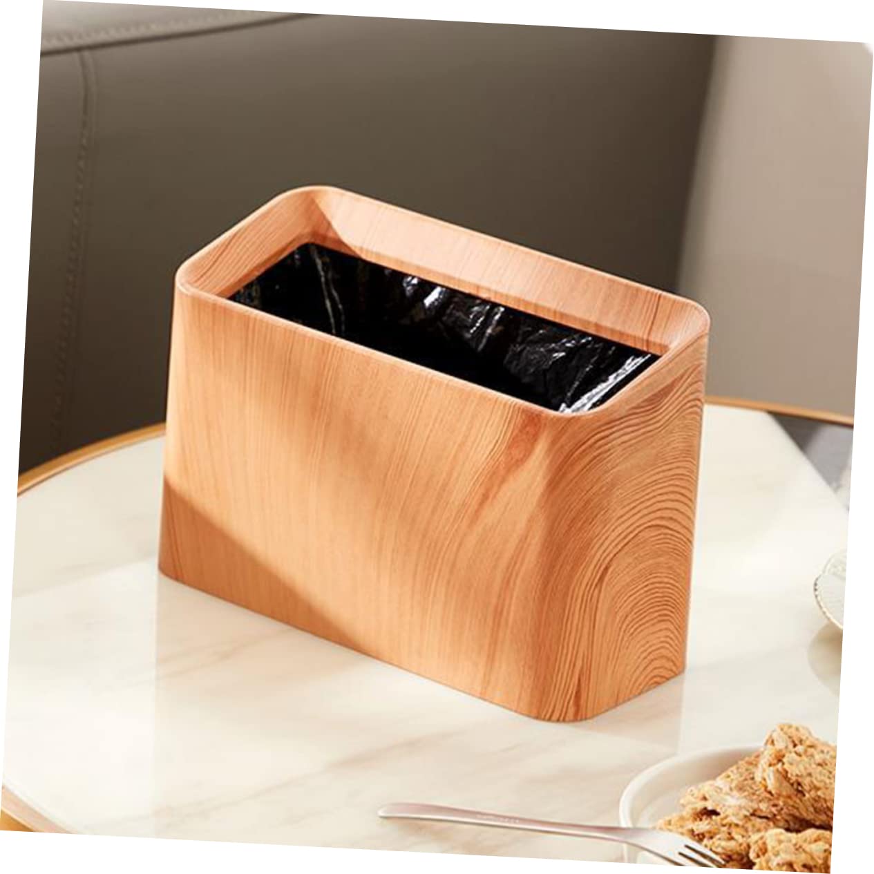 Retro Mülleimer Für Schreibtisch - Holzoptik Mit Deckel 14,7cm