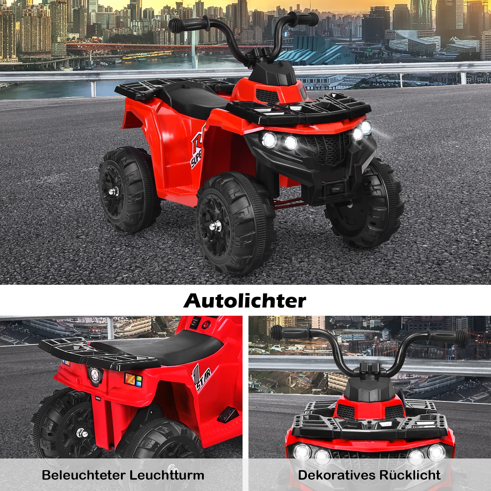 Das ultimative Fahrvergnügen für die Kleinen! Dieses GOPLUS Elektro-Quad mit 4 starken Motoren und 24V Batterie bringt Kinderaugen zum Leuchten. Zwei Sitzplätze für gemeinsame Abenteuer, geeignet für Kinder von 3-8 Jahren (bis 59kg). Zwei Geschwindigkeitsstufen (3-8 km/h) und beide Fahrtrichtungen. Mit sanftem Start und Bremsfunktion für maximale Sicherheit. Federungssystem und verschleißfeste Räder für komfortable Fahrt auf jedem Untergrund. Cooles Armaturenbrett mit Radio, Musikfunktion und LED-Beleuchtung. Ladezeit 8-12 Stunden, dann geht's stundenlang auf Tour. Maße: 113x66x72cm. Aus robustem PP und Metall. Perfektes Geschenk für Geburtstage, Weihnachten oder einfach so - sorgt für unvergessliche Spielstunden im Freien!