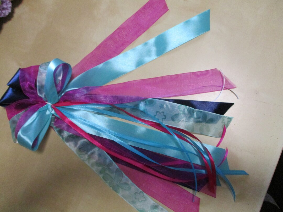 Große Schleife Für Schultüte - Handgefertigte 3D Schleife In Blau-grün-gelb Mit Namensgravur