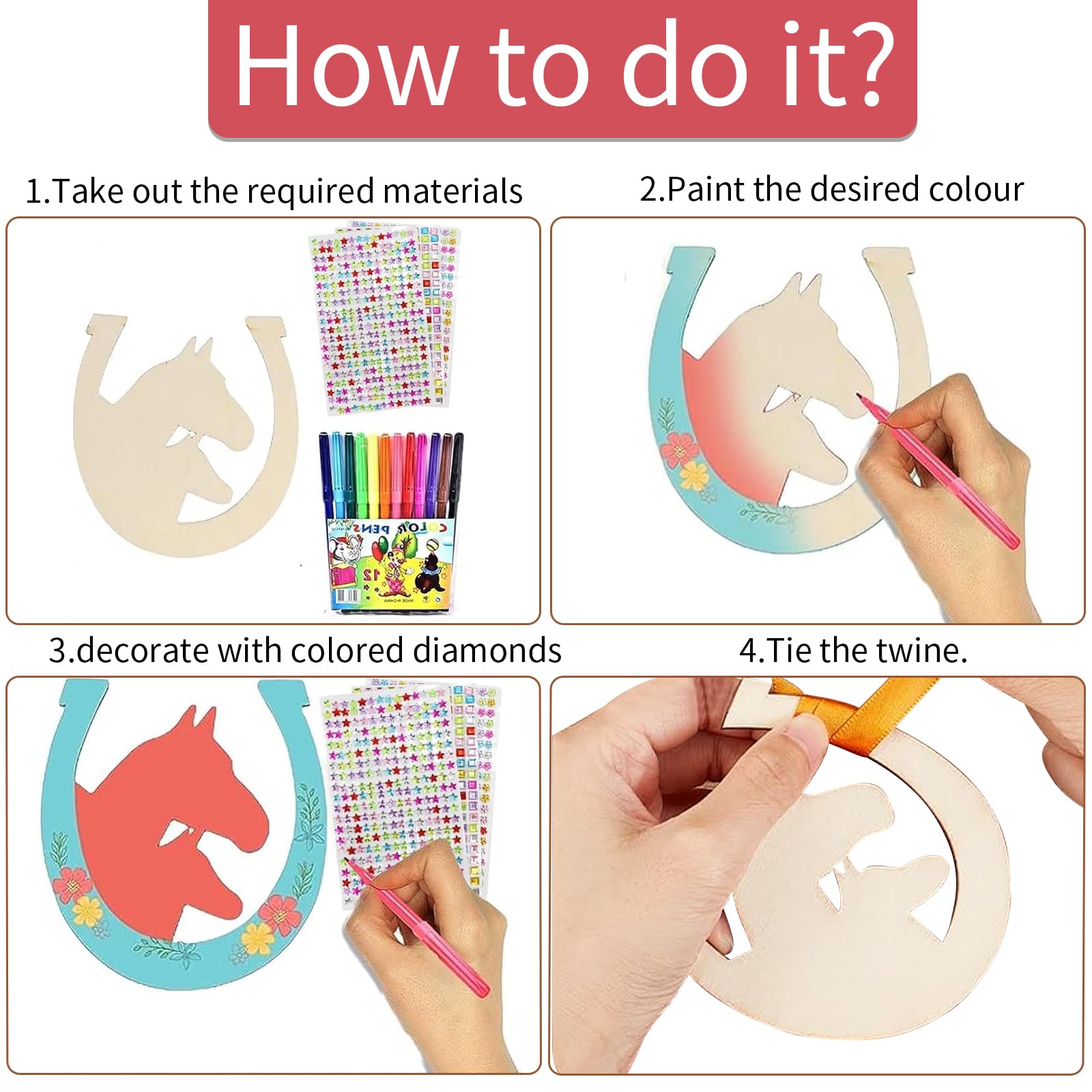 24 Hufeisen Holz Set Zum Basteln - Mit Stiften & Deko Für Kindergeburtstage