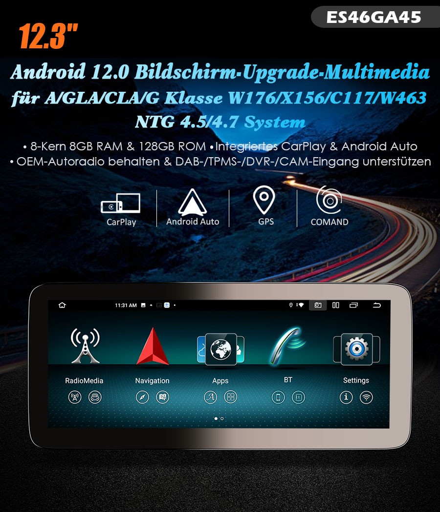 12,3 Zoll Android Auto Radio Für Mercedes A/GLA/CLA/G-Klasse - Mit CarPlay & GPS