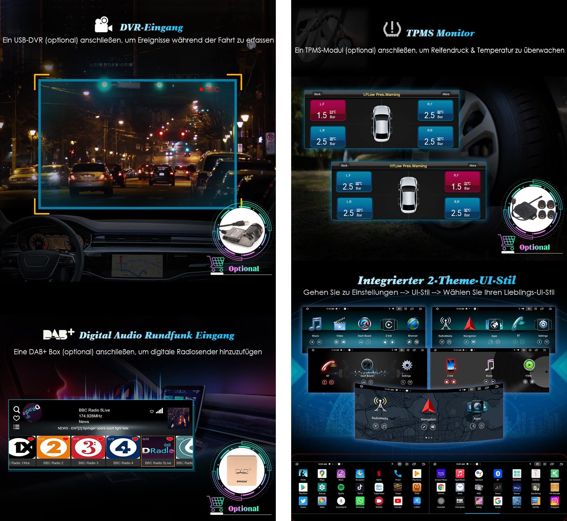 Boah, das ist mal ein Upgrade für deinen Mercedes! Dieses 12,3 Zoll Android Auto Radio verwandelt dein Fahrzeug in ein High-Tech Cockpit. Mit dem riesigen 12,3 Zoll IPS Display mit 2400x900 Pixel Auflösung siehst du alles super scharf. Das neueste Android 14 Betriebssystem läuft auf einem Qualcomm Snapdragon 8-Core Prozessor mit 8GB RAM und 128GB Speicher - das ist schneller als so mancher Computer! CarPlay und Android Auto sind sowohl kabelgebunden als auch kabellos möglich - einfach dein Handy verbinden und los geht's. Das Radio passt perfekt für Mercedes A-Klasse W176, GLA X156, CLA C117 und G-Klasse W463 von 2012-2016 mit NTG 4.5/4.7 System. Integriertes GPS, 4G Internet, DAB+ Radio und DSP Verstärker sorgen für perfekten Sound. Es zeigt sogar originale Fahrzeugdaten wie Ölstand und Temperatur an. Wichtig: Bitte vorher genau prüfen ob dein Fahrzeug kompatibel ist! Mach aus deinem Mercedes ein modernes Multimedia-Wunder - deine Fahrten werden nie wieder langweilig!