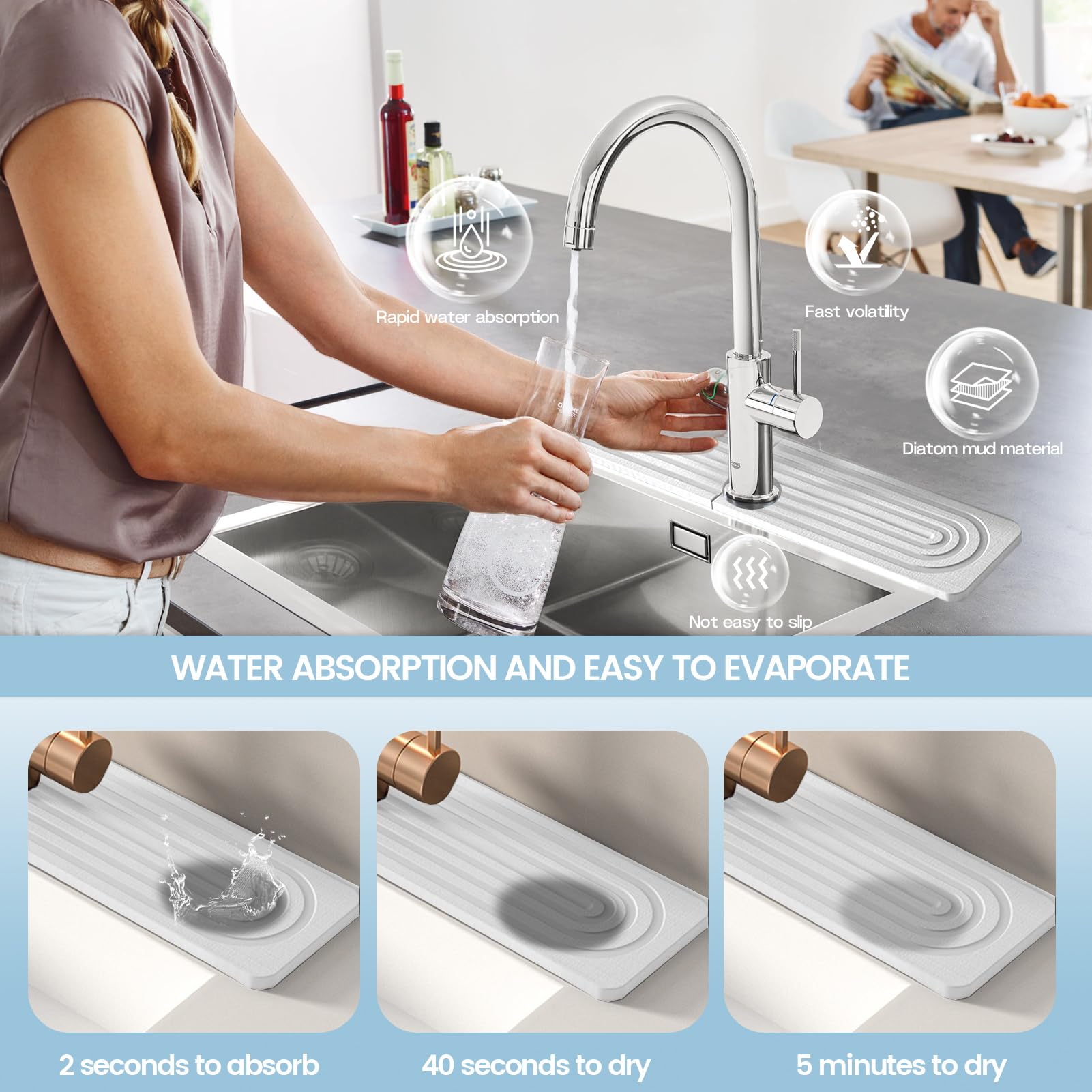 Abtropfmatte Aus Kieselgur Für Spüle - 60cm Spritzschutz Mit 2 Untersetzern Für Küche & Bad