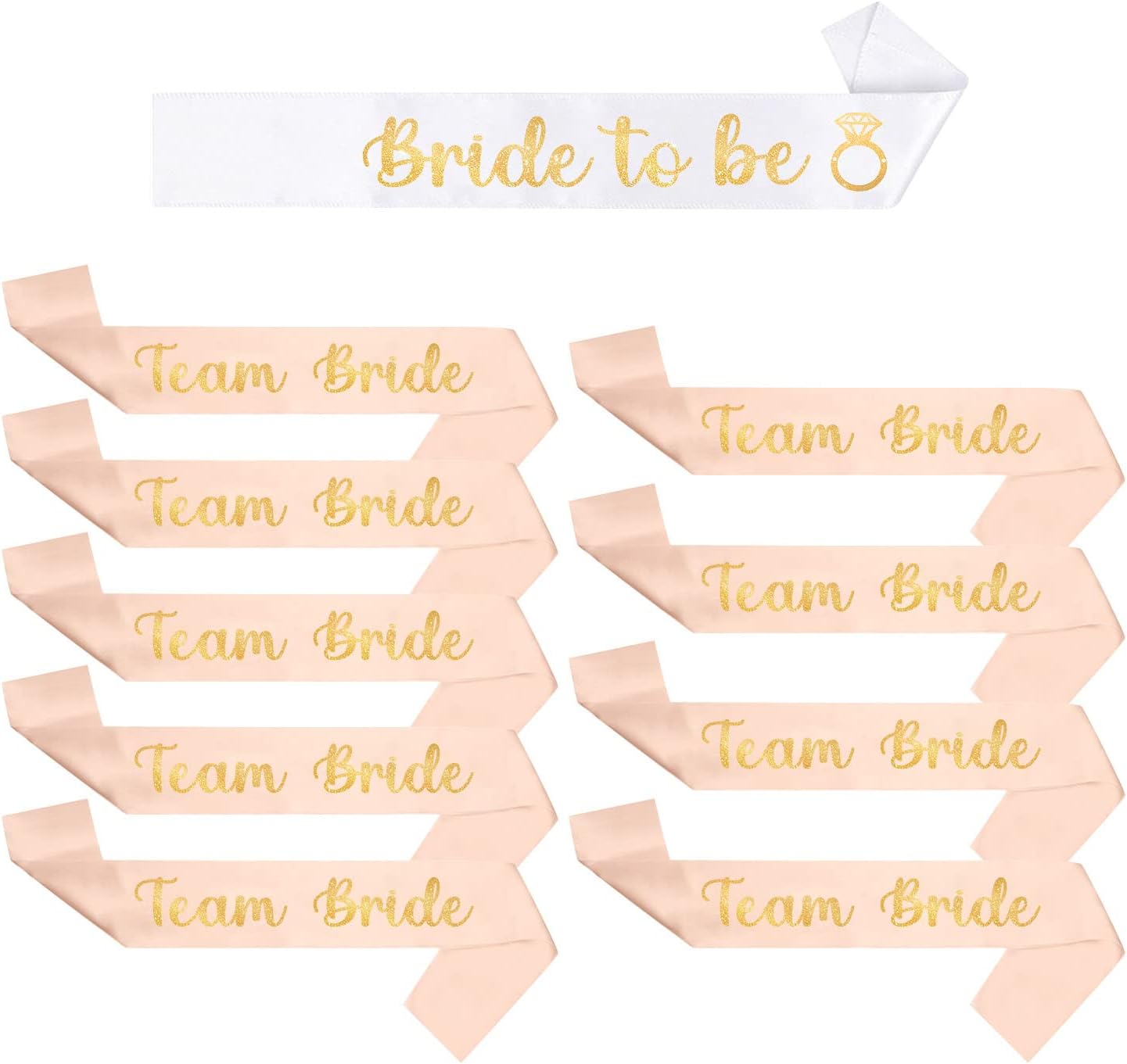 Planst du einen Junggesellinnenabschied? Dieses 7-teilige Schärpen-Set ist perfekt für die Feier! Enthalten: 1x 'Bride to Be' Schärpe und 6x 'Team Bride' Schärpen. Mit eleganter Rose-Gold-Bedruckung - sieht hochwertig aus und unterstreicht den festlichen Charakter. Aus weichem, strapazierfähigem Material - angenehm zu tragen und langlebig. Perfekt für Braut, Brautjungfern und Gäste - schafft sofort Partystimmung! Ideal für Bachelorette Party, Polterabend oder Hochzeitsvorbereitungen. Einfach überziehen und die Feier kann beginnen! Macht tolle Fotos und sorgt für unvergessliche Momente. Auch als Geschenkidee super - die Braut wird begeistert sein! Hol dir das komplette Set für den perfekten Mädelsabend - Erinnerungen garantiert!