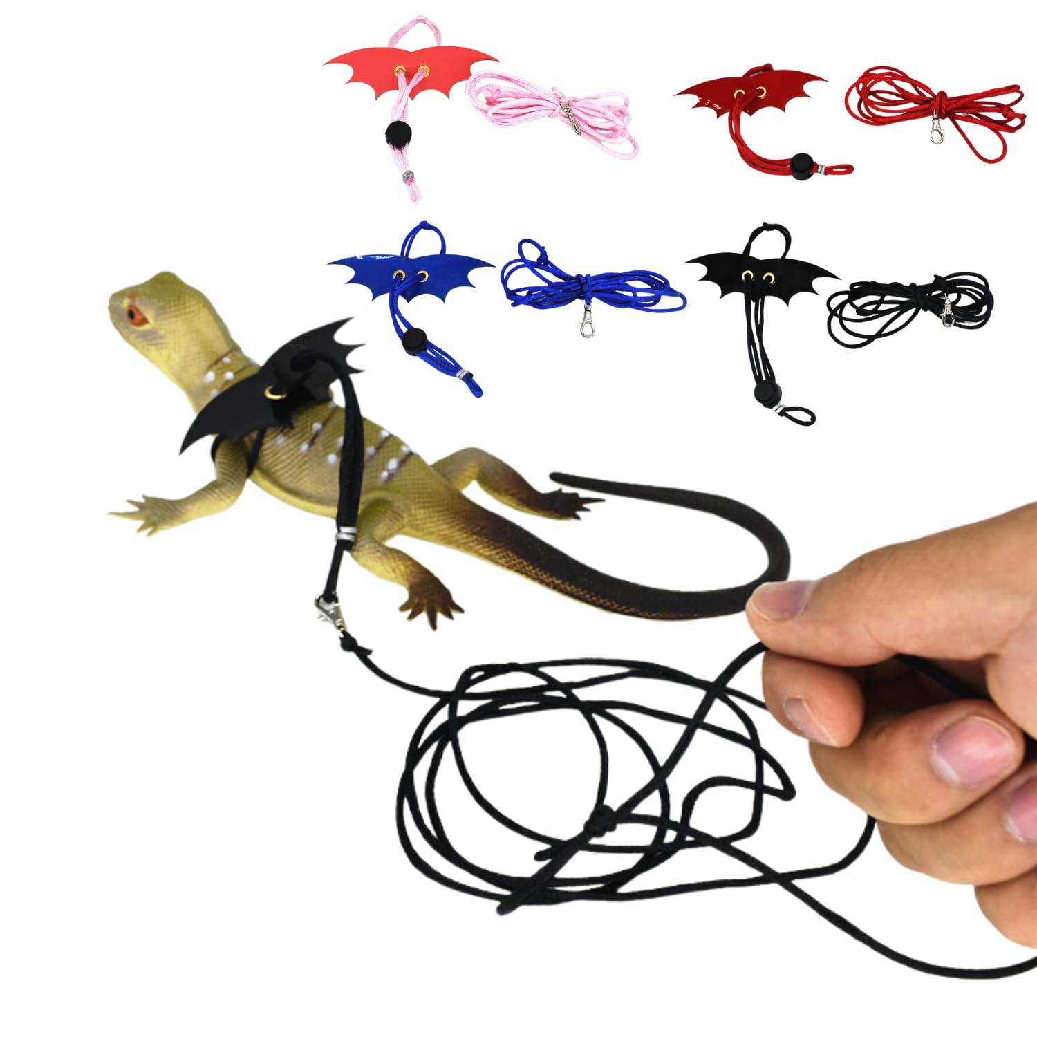 Leine & Geschirr Set Für Bartagamen - 3 Größen In Schwarz, Verstellbar Für Reptilien & Kleintiere