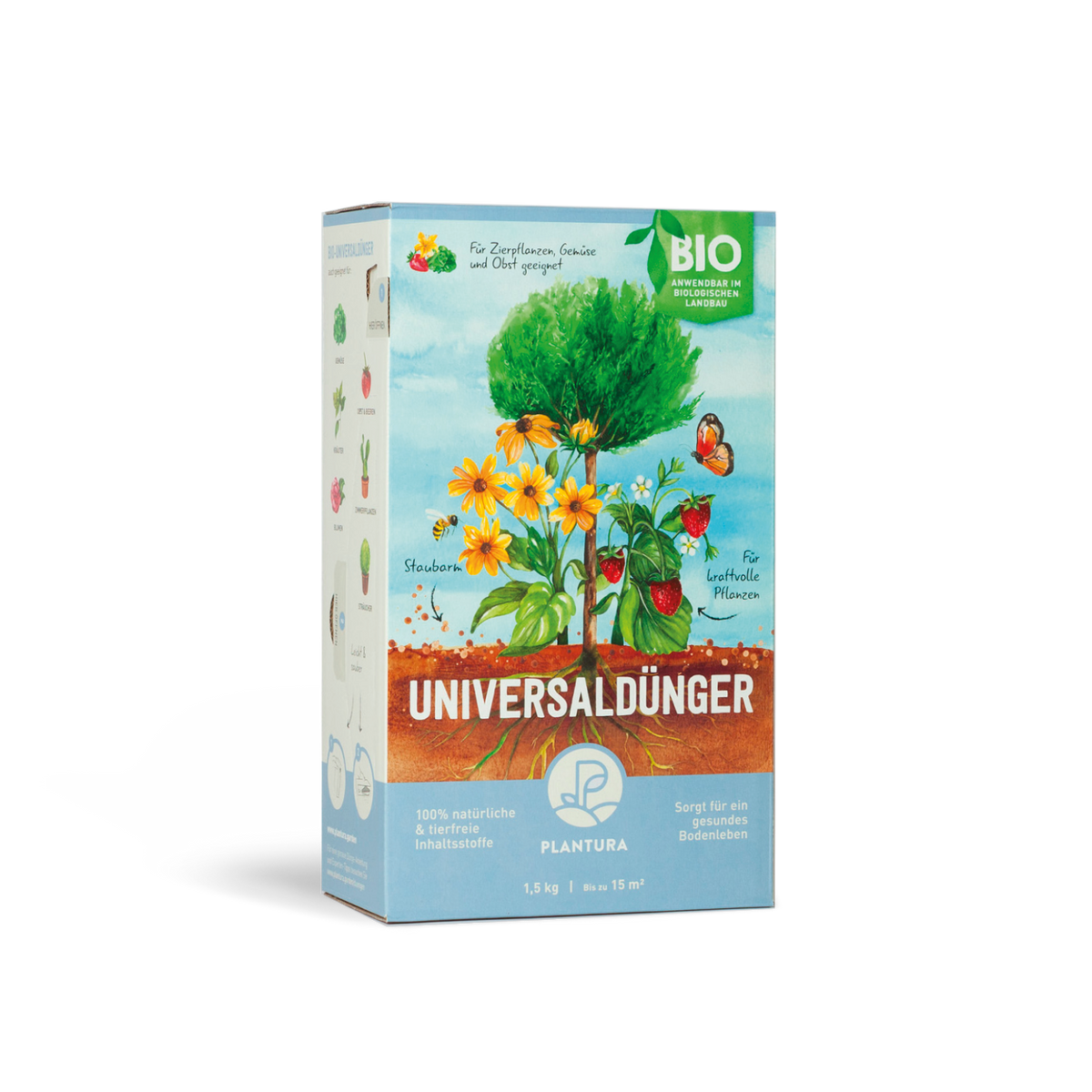 Dieser biologische Universaldünger ist genau das Richtige für alle Hobbygärtner! Speziell entwickelt für Gemüse-, Obst- und Topfpflanzen - ob auf dem Balkon, der Terrasse oder im Garten. Die natürliche Formel versorgt deine Pflanzen von Anfang an mit allen wichtigen Nährstoffen. Organischer Stickstoff sorgt für gesundes Wachstum, Kalium verbessert Farbe und Geschmack der Früchte. Und das Beste: Der Dünger ist für den ökologischen Landbau zugelassen! Mit dem praktischen Dosierdeckel mit 3 Stufen kannst du genau die richtige Menge abmessen. Aber Vorsicht: Bitte Handschuhe und Schutzbrille tragen, denn Flüssigdünger kann Haut und Augen reizen. Außer Reichweite von Kindern und Haustieren aufbewahren. Mit 1 Liter Inhalt hast du lange was von dem hochwertigen Dünger, der nach original Rezeptur hergestellt wird. Deine Pflanzen werden's dir danken!