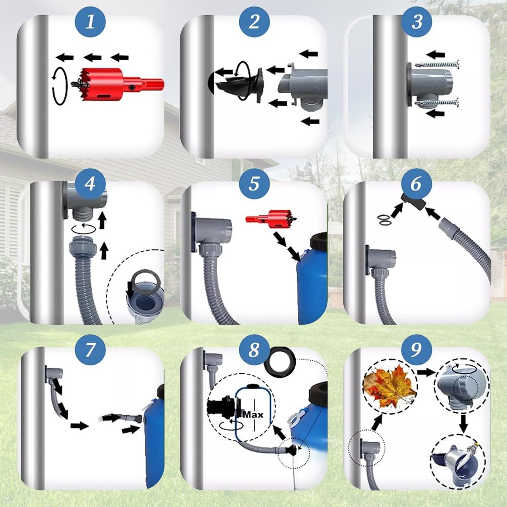 Kostenloses Wasser für deinen Garten! Dieser Regenwassersammler macht's möglich. Passt für Fallrohre von 70-110mm Durchmesser - einfach und ohne Demontage montiert! Mit 1m Schlauch, Kronenbohrer und komplettem Montagezubehör. Aus hochwertigem PVC und Gummi, reißfest und langlebig. Ideal für Dächer bis 80m². Sammle Regenwasser für Pflanzen, Garten oder Putzarbeiten - spart Geld und schont die Umwelt! Verhindert überlaufende Fallrohre und schützt dein Fundament. In 5 Minuten installiert, einfach zwischen Sommer- und Winterbetrieb umstellen. Mach dich unabhängiger und nachhaltiger! Einfach bestellen, montieren und das kostenlose Nass genießen!