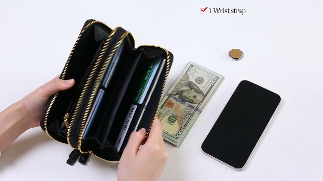 Klein aber oho! Diese süße Geldbörse aus echtem Leder hat alles was du brauchst: 9 Kartenschlitze, 3 ID-Fenster und ein Münzfach. Mit RFID-Schutz gegen digitalen Diebstahl. Besonders praktisch: Das abnehmbare Armband - so hast du deine Brieftasche immer griffbereit. Nur 11x9x3cm klein, passt in jede Handtasche. In edler Geschenkbox - perfekt als Präsent für deine Liebste!