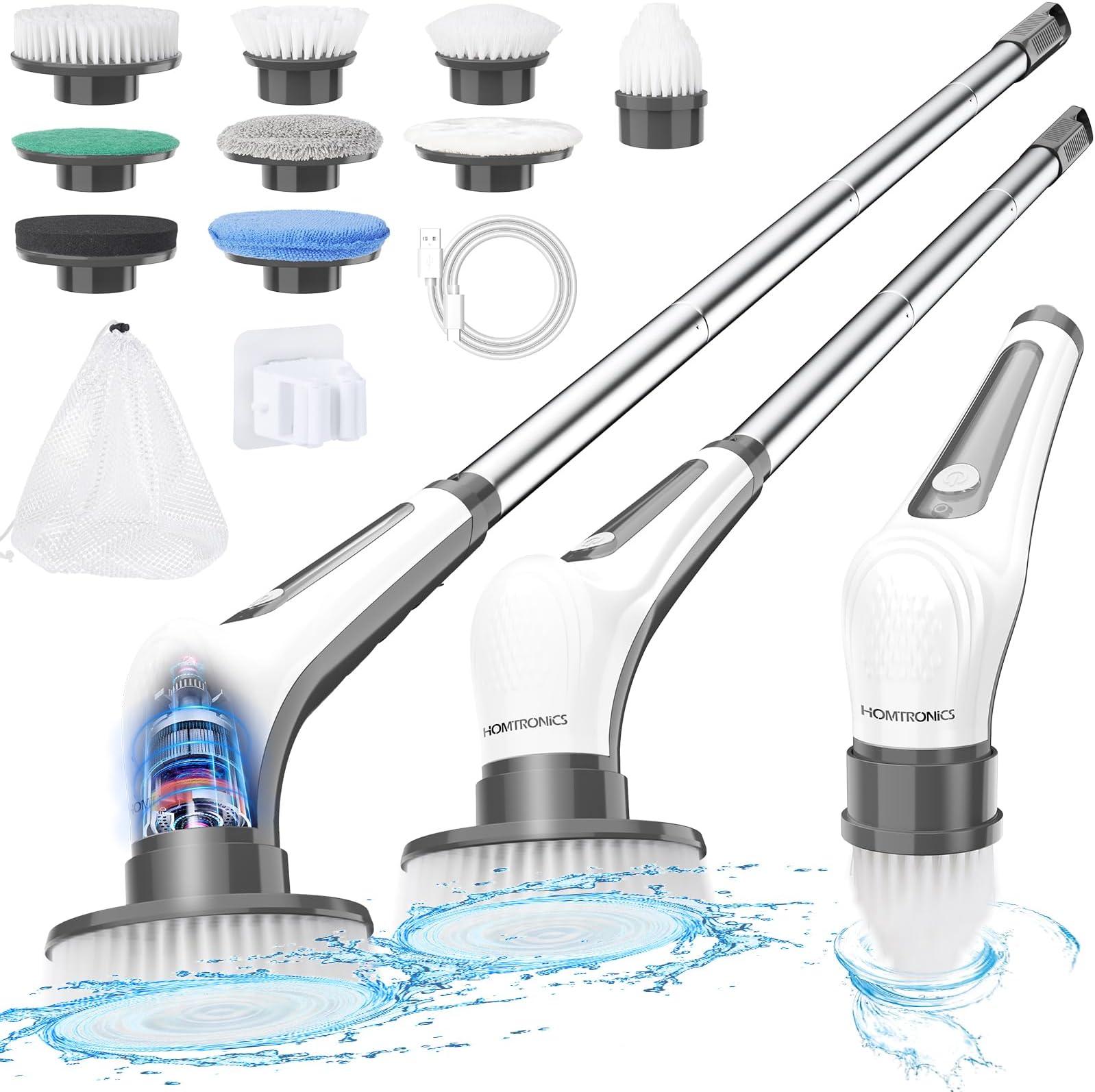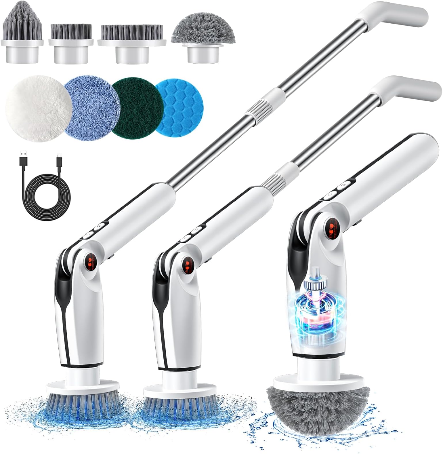 Schluss mit anstrengendem Schrubben! Diese elektrische Reinigungsbürste erledigt die Drecksarbeit für dich - und das komplett kabellos. Mit 9 austauschbaren Bürstenköpfen bist du für jede Reinigungsaufgabe gewappnet: Die Flachbürste für Böden und Wände, die Eckbürste für Fugen und schwer erreichbare Stellen, und die Tuchbürste für empfindliche Oberflächen. Zwei Geschwindigkeitsstufen stehen zur Auswahl: 300 U/min für normale Verschmutzungen und 400 U/min für hartnäckige Flecken. Der verstellbare Griff lässt sich mit zwei Verlängerungsstangen auf die perfekte Länge bringen - super für Duschwände oder den Boden, ohne dass du dich bücken musst. Besonders praktisch für Menschen mit Rückenproblemen! Der eingebaute 2000mAh Akku hält nach nur 3 Stunden Ladung bis zu 90 Minuten durch. Kein Kabelsalat, keine Steckdosen-Suche - einfach einschalten und loslegen. Egal ob verkalkte Duschkabinen, verschmutzte Fliesen, verkrustete Grillroste oder sogar die Auto-Außenwäsche - diese Bürste macht aus lästiger Putzarbeit fast schon Spaß. Dein Zuhause wird strahlen und du sparst dabei noch Zeit und Kraft!
