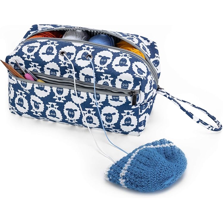 LetCart Strick- Und Häkeltasche Für Wolle - Große Aufbewahrungstasche Mit Blumenmuster