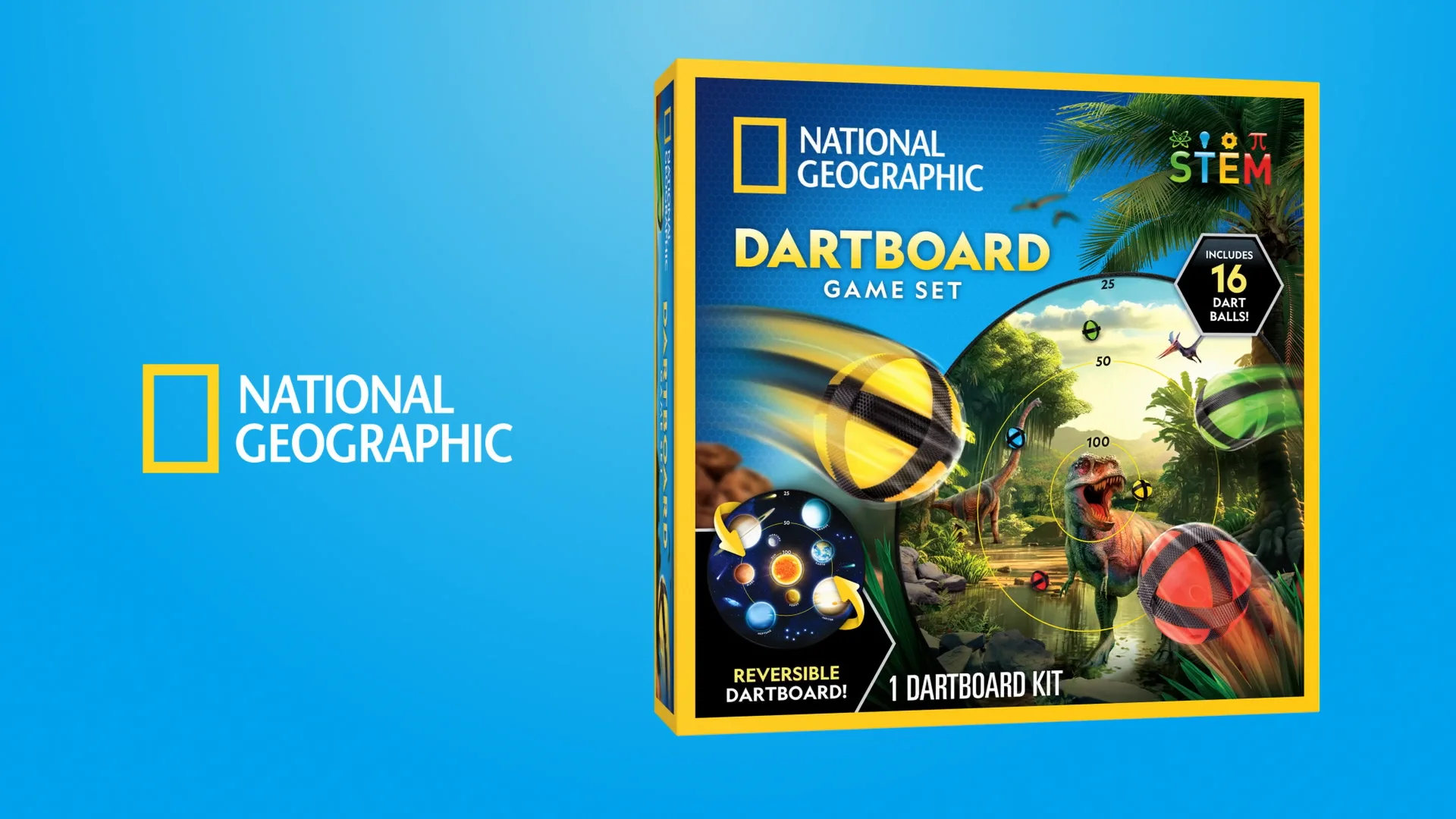 NATIONAL GEOGRAPHIC Dartboard Für Kinder - 71cm Mit Haftbällen Dino & Weltraum