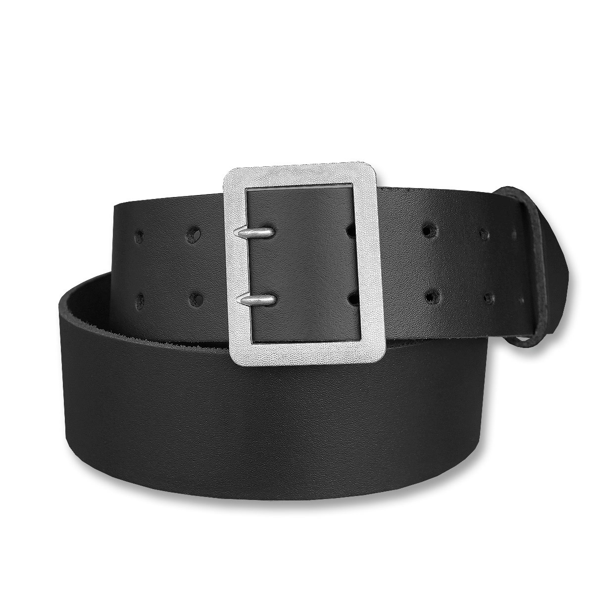 Lederkoppel 2-Dorn Schwarz - Dienstgürtel 4,5cm Für Polizei & Feuerwehr