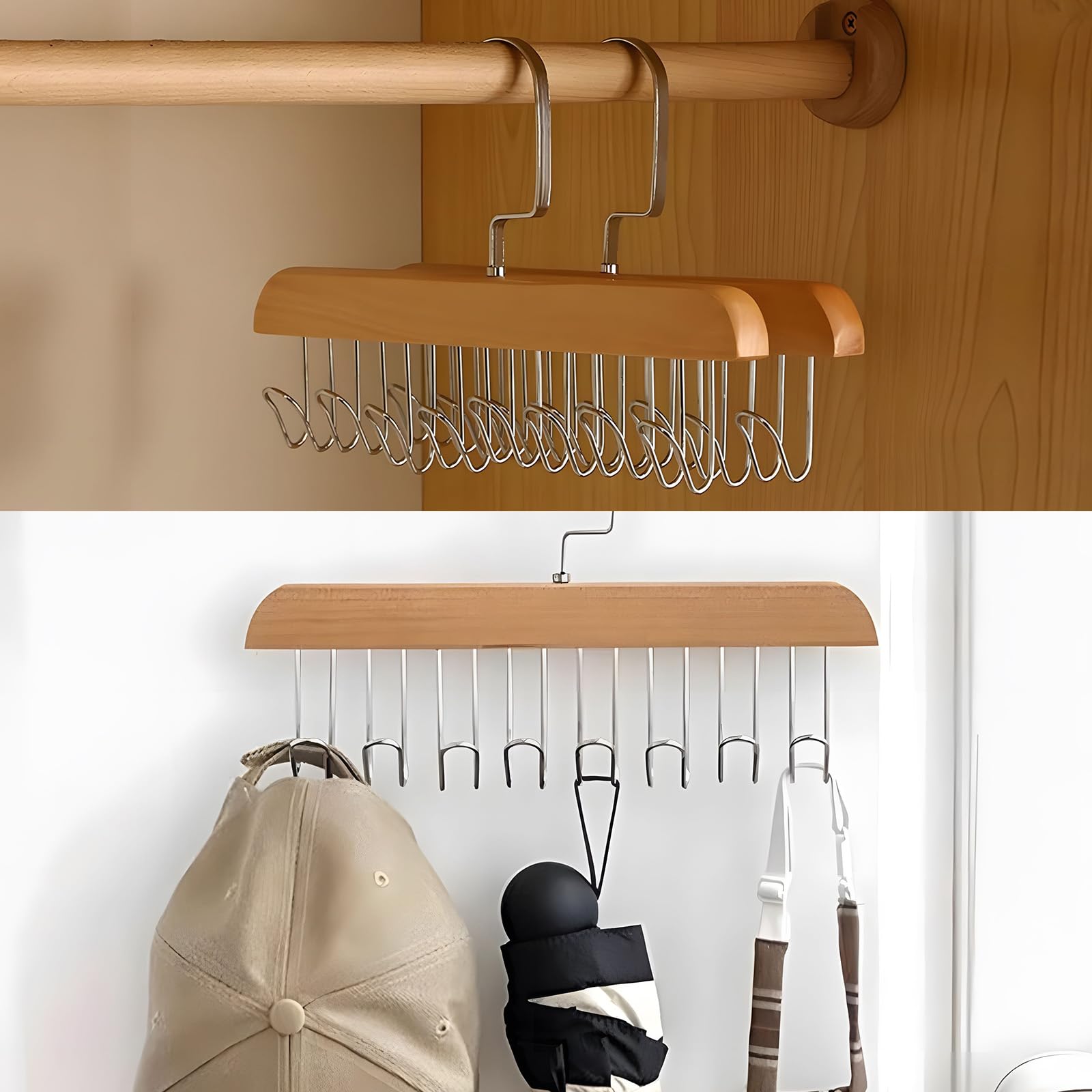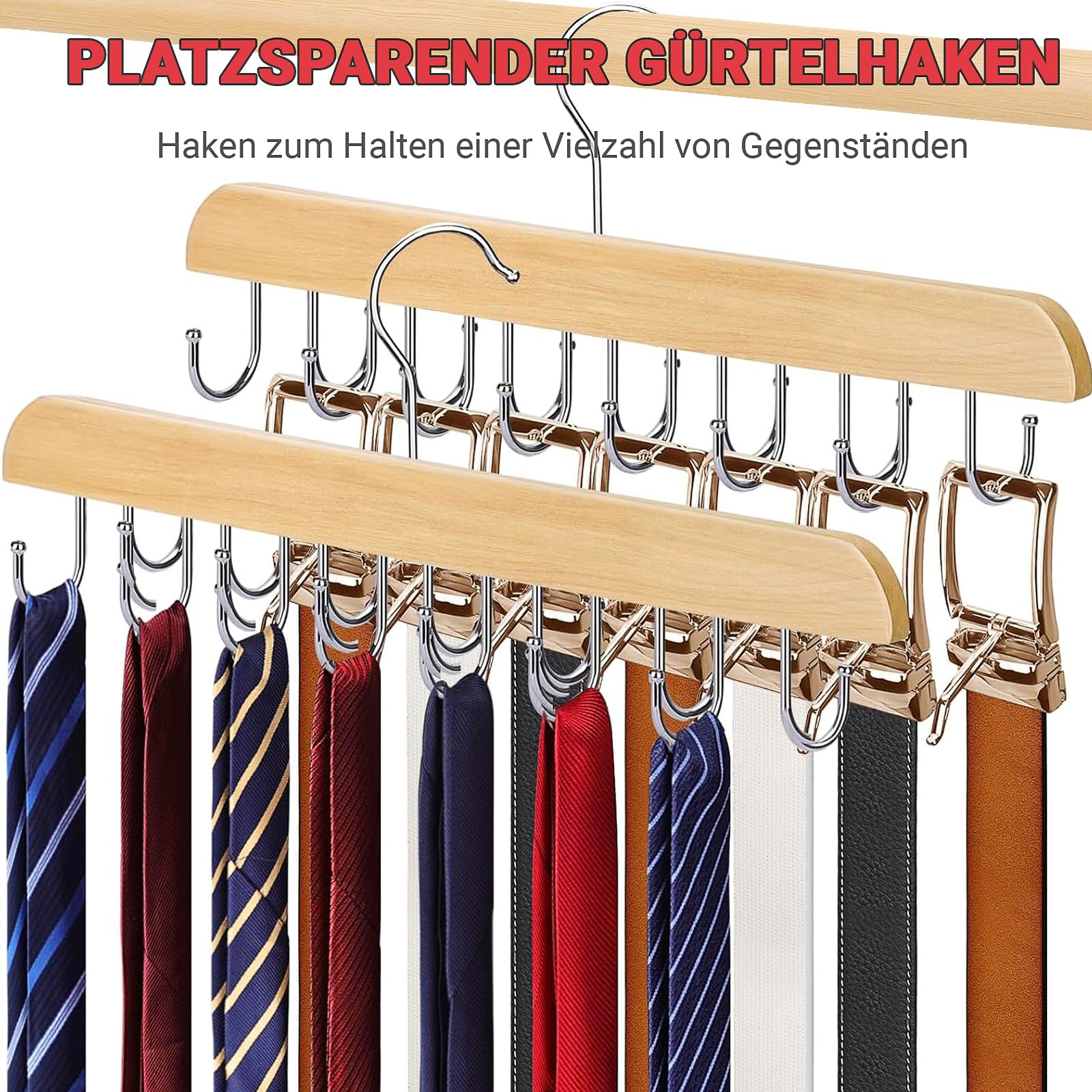 STCRERAG Gürtelhalter Aus Buchenholz - 14 Schlitze, Drehbarer Organizer Für Gürtel & Accessoires