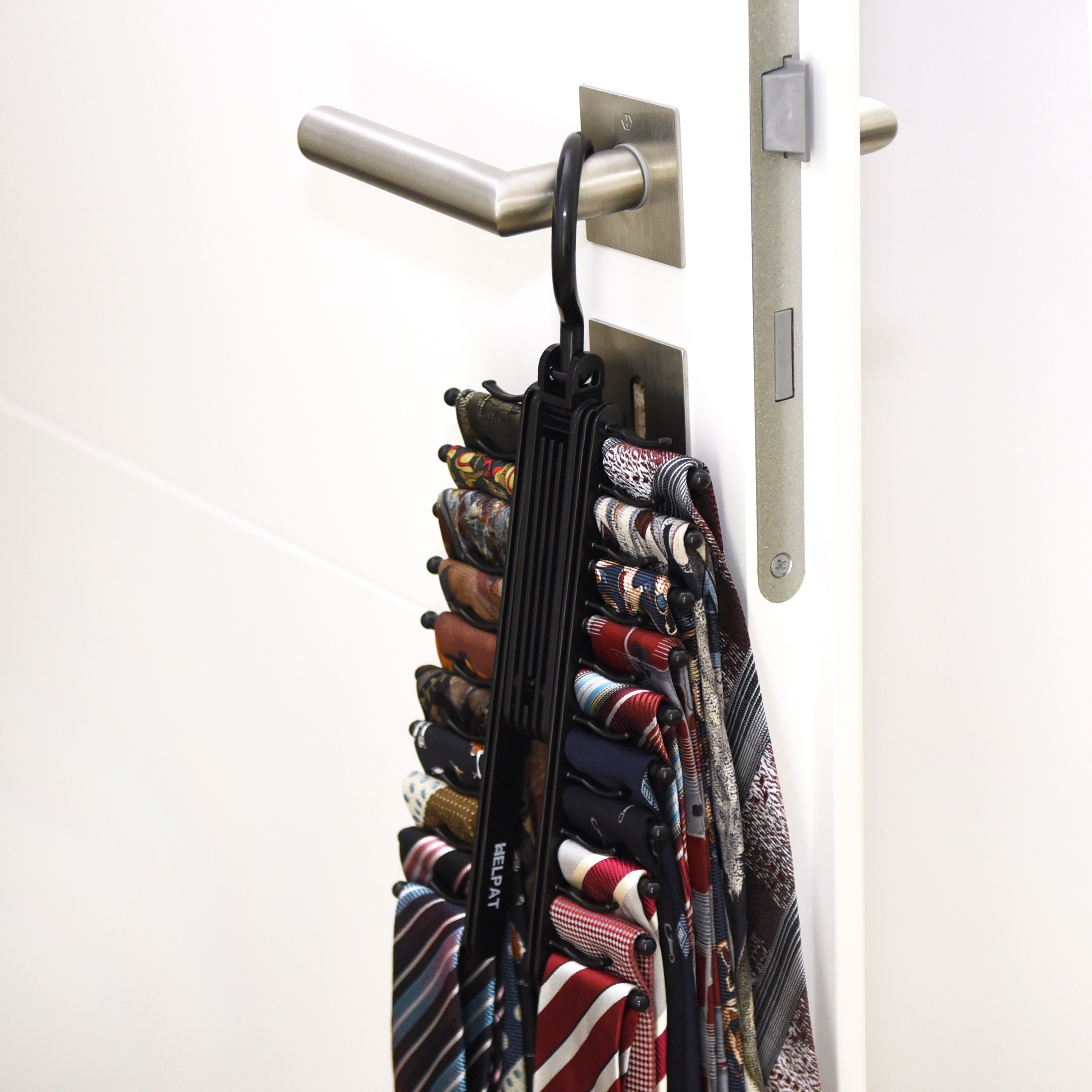 Schluss mit zerknitterten Krawatten! Diese praktische Gertenhalterung von EKKIA bietet Platz für ganze 11 Krawatten. Aus robustem Kunststoff gefertigt und in schwarz gehalten - passt in jeden Schrank. Einfach mit den 4 mitgelieferten Schrauben an der Wand befestigen und schon hast du deine Krawatten immer ordentlich griffbereit. Kein Suchen mehr morgens vor dem Arbeitsbeginn! Die Krawatten hängen schön frei und knittern nicht. Super platzsparend und übersichtlich. Perfekt für Business-Leute mit mehreren Krawatten oder als Geschenk für den style-bewussten Mann. Einfach zu montieren, hält ewig und sieht dabei noch gut aus. Mach deinen Kleiderschrank endlich ordentlich und organisiert!