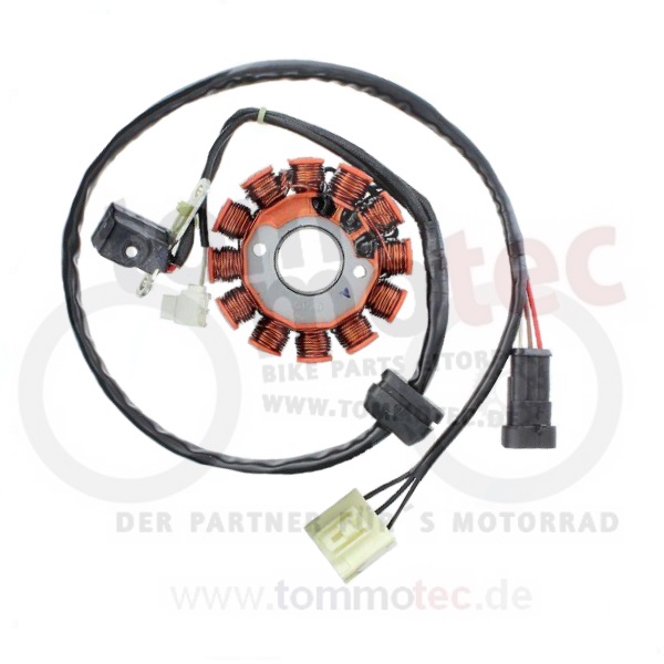 Originalgetreuer Stator-Ersatz für deine GasGas Enduro! Kompatibel mit EC 125, 200, 250, 300 Modellen von 2005-2008. Einfache Plug-and-Play Installation - passt direkt ohne Modifikationen. Mit hochwertigen Kupferwicklungen die bis 201°C hitzebeständig sind. Inklusive Pick-up-Pulsar-Spule und Stecker. Aus premium Laminierungsmaterialien für maximale Haltbarkeit und Leistung. Mach deine GasGas wieder straßen- oder rennbereit mit diesem qualitativ hochwertigen Ersatzteil. Zuverlässige Stromversorgung garantiert!