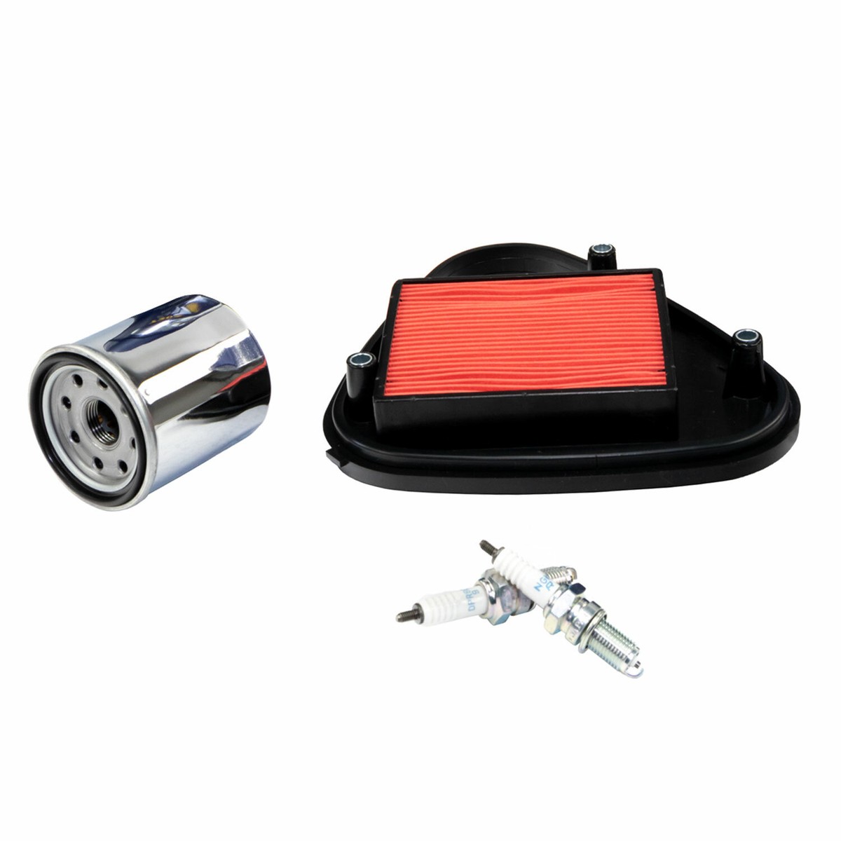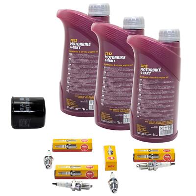 Enthalten: 3 Liter Mannol 10W40 teilsynthetisches Motoröl, Luftfilter 130212, Ölfilter MF303 und 4x NGK Zündkerzen DPR8EA-9.