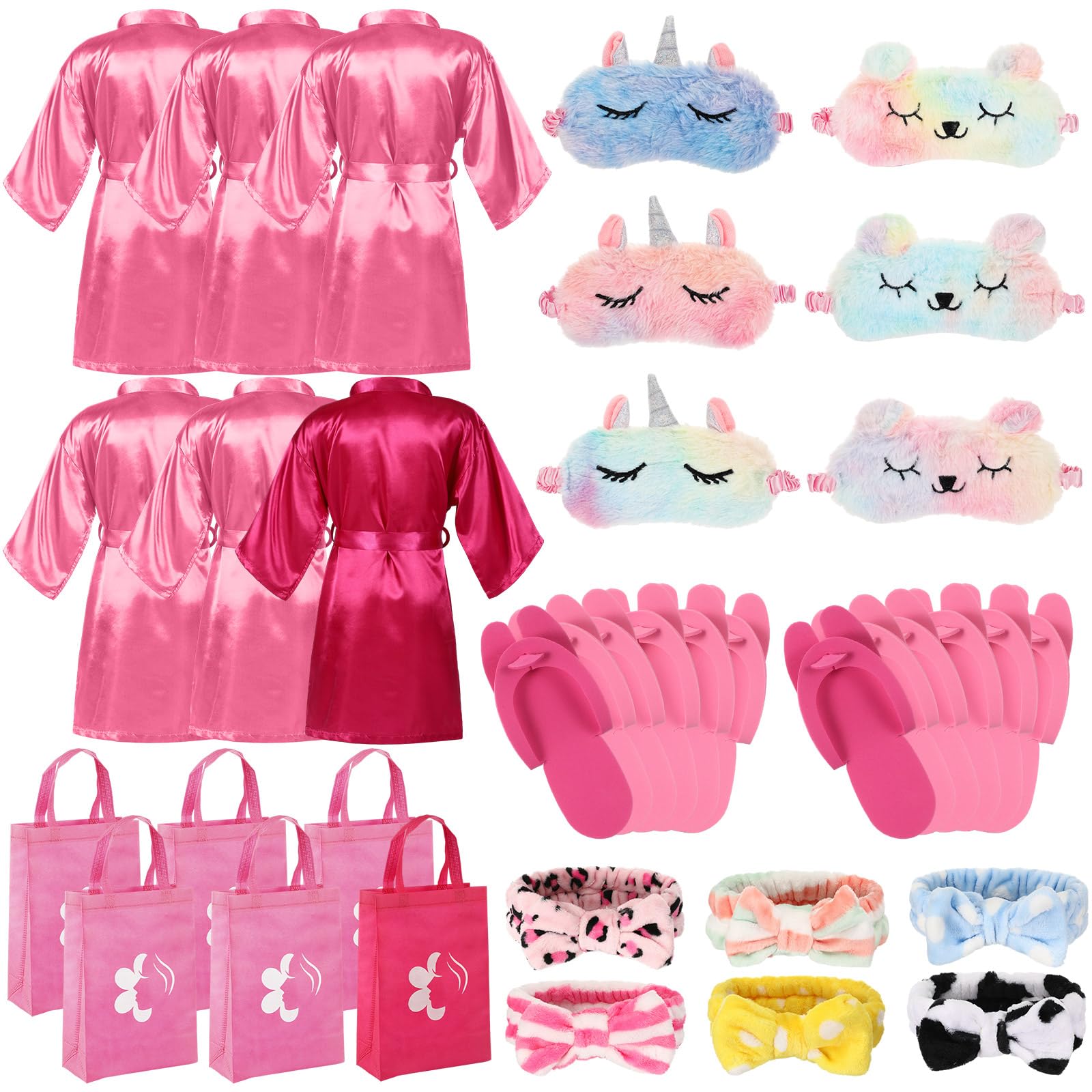 TESIN Spa-Party Set Für Mädchen - 6 Bademäntel, Stirnbänder, Masken, Taschen, Rosa