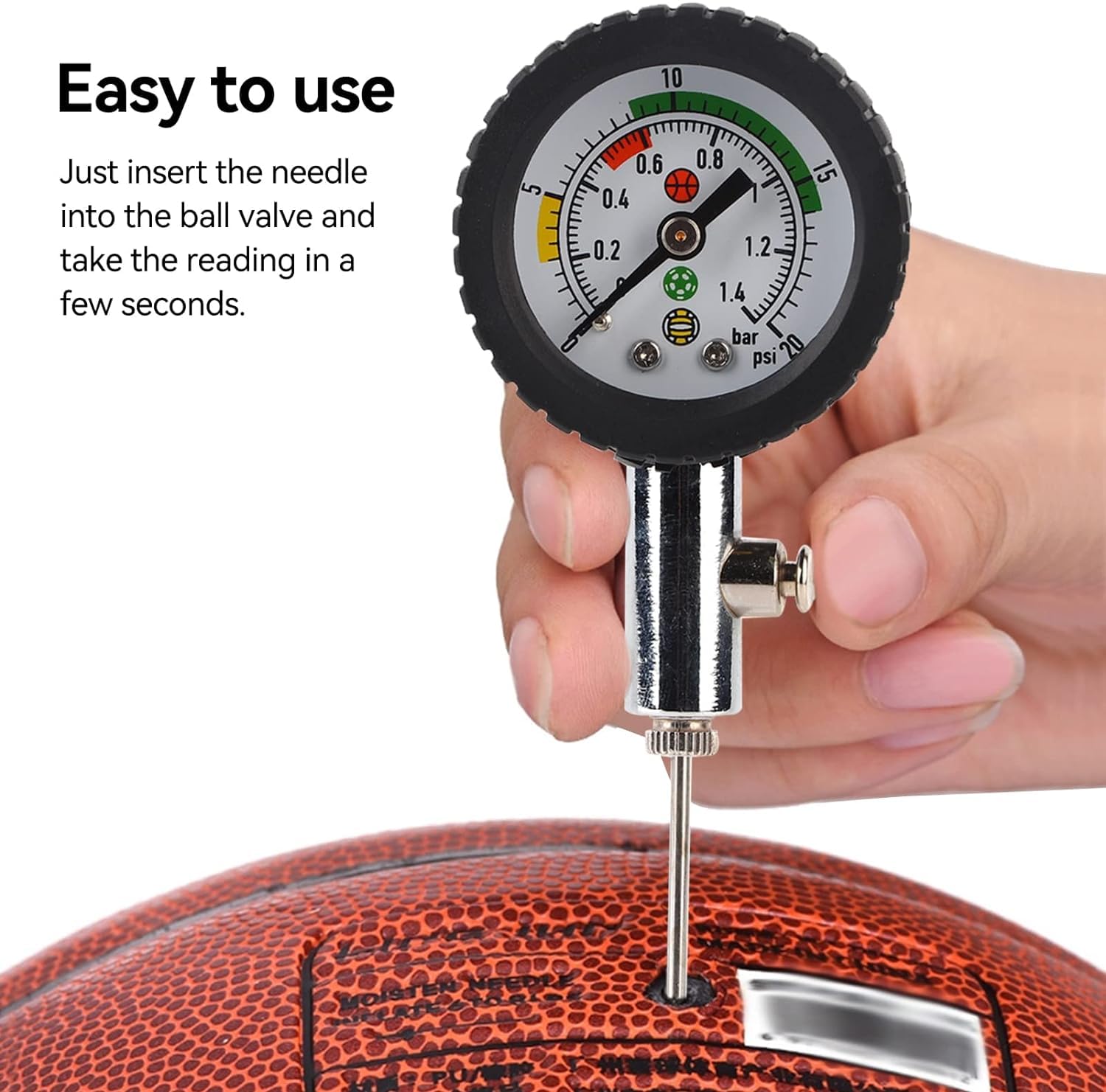 Und das Beste: Die Messung ist super präzise! Du siehst sofort, ob dein Ball den optimalen Druck hat. Kein Rumgerate mehr - einfach draufstecken und ablesen. So macht Sport noch mehr Spaß!