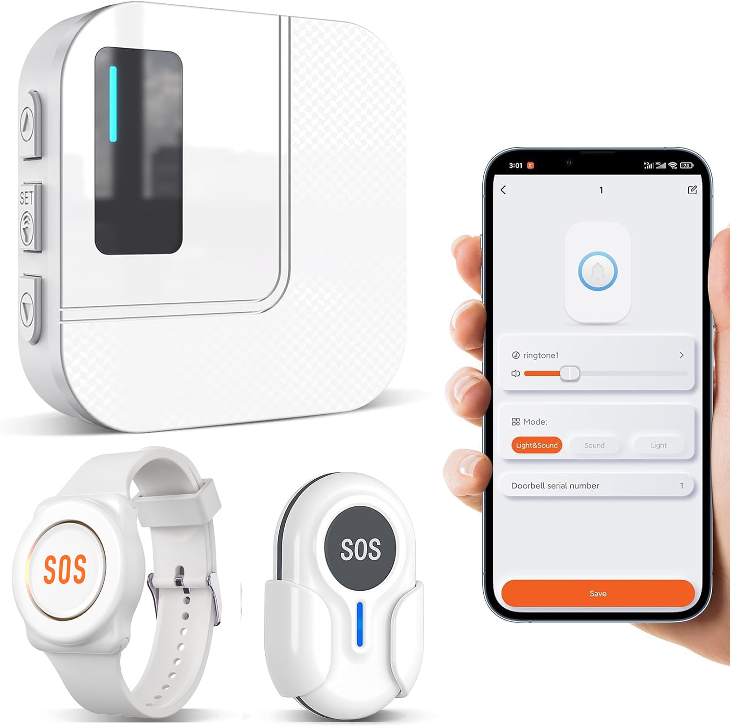 WDEC Hausnotruf Für Senioren - Kabelloser Notrufknopf Mit 20m Reichweite, SOS Alarm