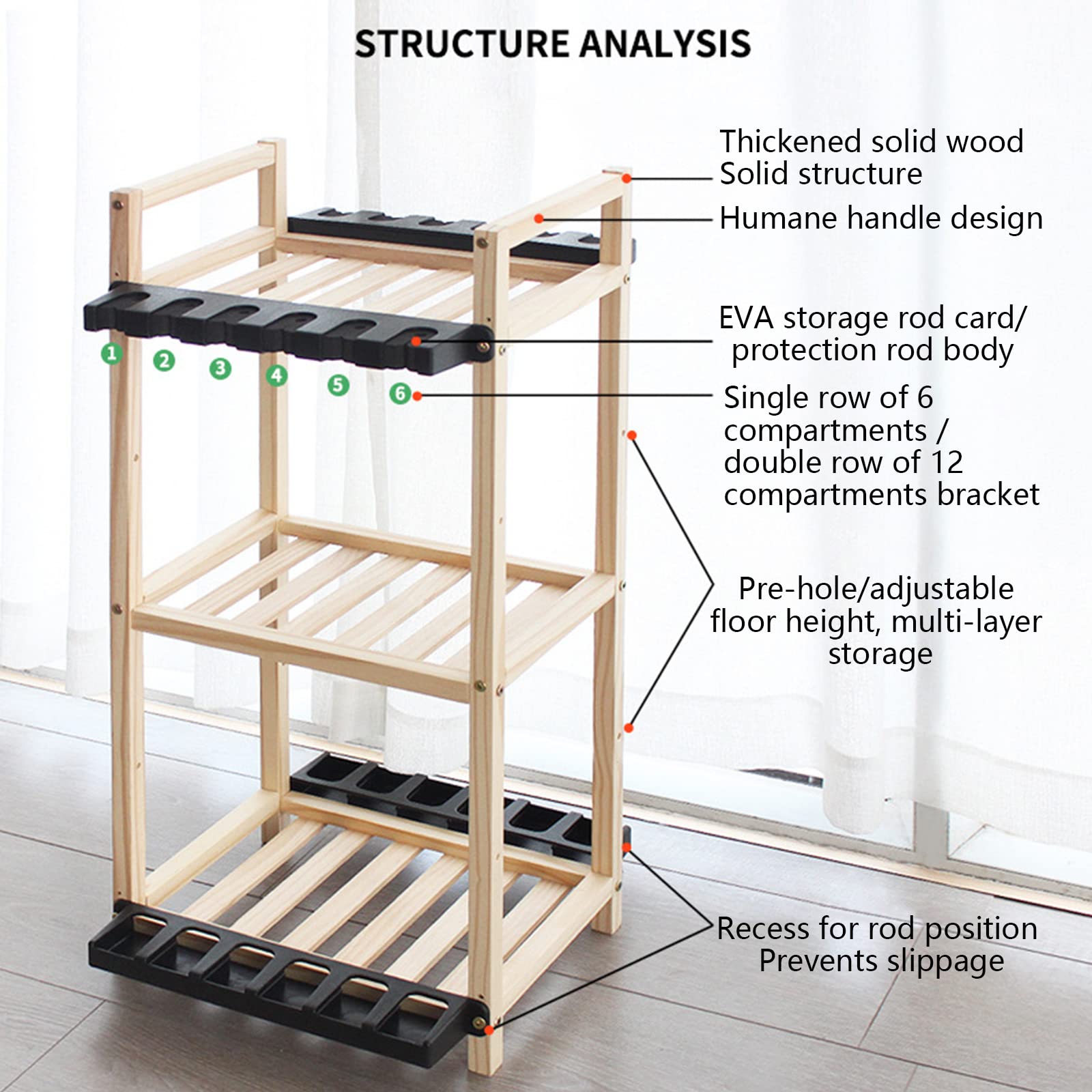 OUUTMEE Angelrutenständer Aus Massivholz - Für 10 Ruten 60x57x28cm - Mit Montagezubehör