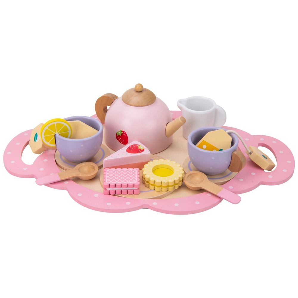 Eine komplett ausgestattete Teeparty für die Kleinen! Dieses Holz-Teeset enthält alles für gemütliche Spielstunden: Teekanne, Zucker-dose, Tassen, Löffel, Teebeutel, Zitronenscheiben und sogar Desserts. Aus hochwertigem Holz mit abgerundeten Ecken - sicher für kleine Hände. Fördert kreatives Rollenspiel und Feinmotorik. Mit praktischem Tablett für Ordnung beim Spielen. Perfekt für Kinderküchen oder eigenständiges Spielen. Ein wunderbares Geschenk für Geburtstage oder Weihnachten!