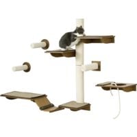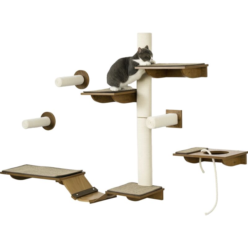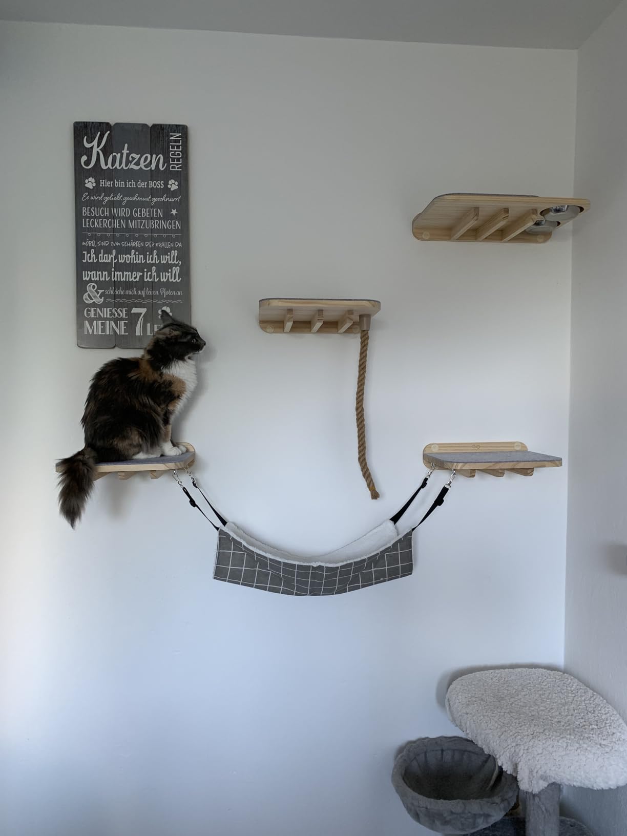 Wow, deine Katze wird verrückt nach diesem Kletterparadies sein! Dieses 8-teilige Set im Gothic-Stil sieht nicht nur ultra-cool aus, sondern bietet deinem Stubentiger auch jede Menge Action. Da gibt's ein Fledermaus-förmiges Katzenbett, ein Bett mit Kreuz-Design und sogar Sisal-Säulen mit Spinnen-Spielzeug. Alles aus natürlichem Kiefernholz und weichem Flanell - riecht nicht und ist super langlebig. Die Montage ist total einfach: Die Bretter sind schon vorgebohrt, du musst sie nur an die Wand nageln. So sparst du Platz und deine Katze kann nach Herzenslust klettern, kratzen und entspannen. Die weichen Kissen auf den Plattformen laden zum Ausruhen ein. Perfekt für Wohnungen, wo Platz knapp ist. Deine Katze wird ihren eigenen kleinen Abenteuerspielplatz haben - und du hast deine Ruhe!