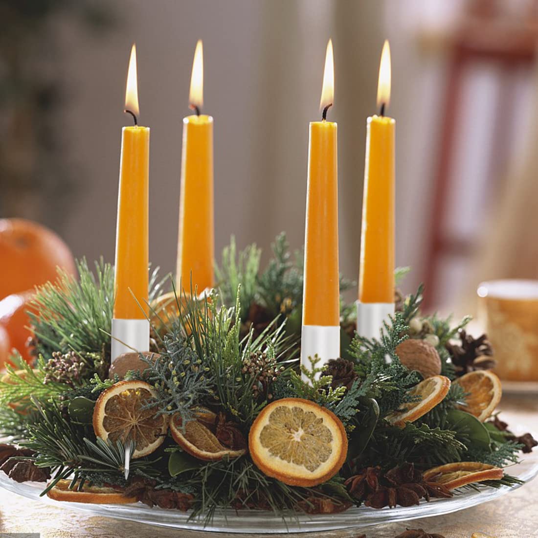 Weihnachten kann kommen! Mit diesen stylischen Kerzenhaltern machst du deinen Adventskranz perfekt. Aus hochwertigem Metall in schickem Silber - die sehen nicht nur gut aus, sondern sind auch super stabil. Ohne lästigen Dorn in der Mitte passen sowohl dicke Wachskerzen als auch moderne LED-Kerzen perfekt. Der erhöhte Rand verhindert, dass Wachs auf deinen schönen Kranz tropft. Einfach den Nagel in den Kranz stecken, Kerze rein und fertig! Perfekt für selbstgebastelte Kränze oder Gestecke. Übrigens: Die Halter sind nicht nur für Weihnachten super - auch für Hochzeiten, Tischdekoration oder einfach für gemütliche Abende zuhause. Mach es dir mit dem richtigen Kerzenlicht gemütlich!